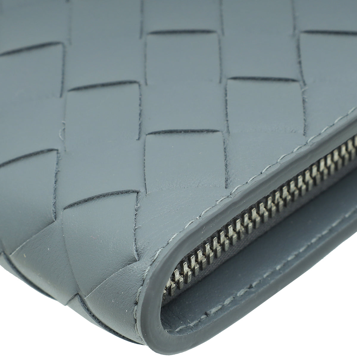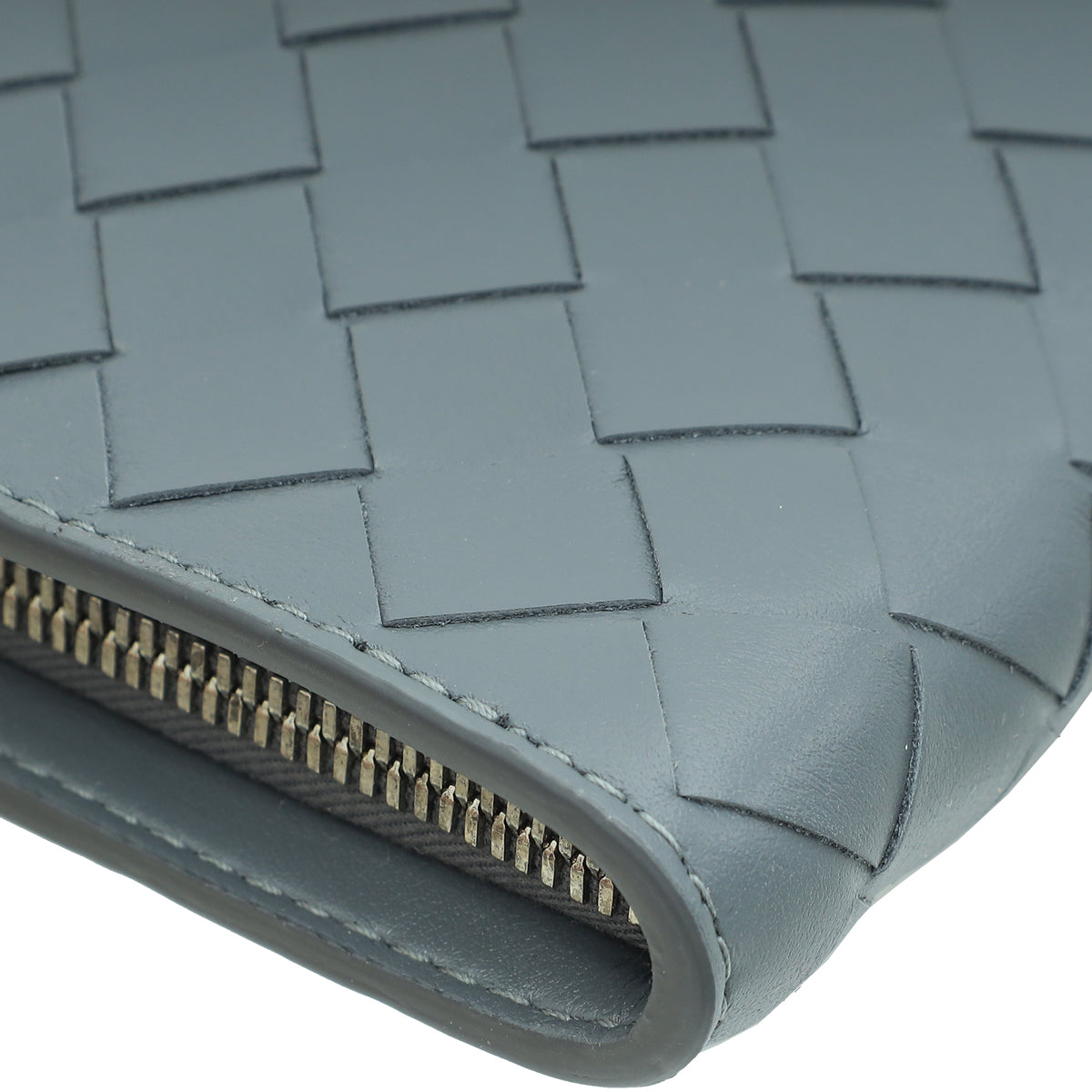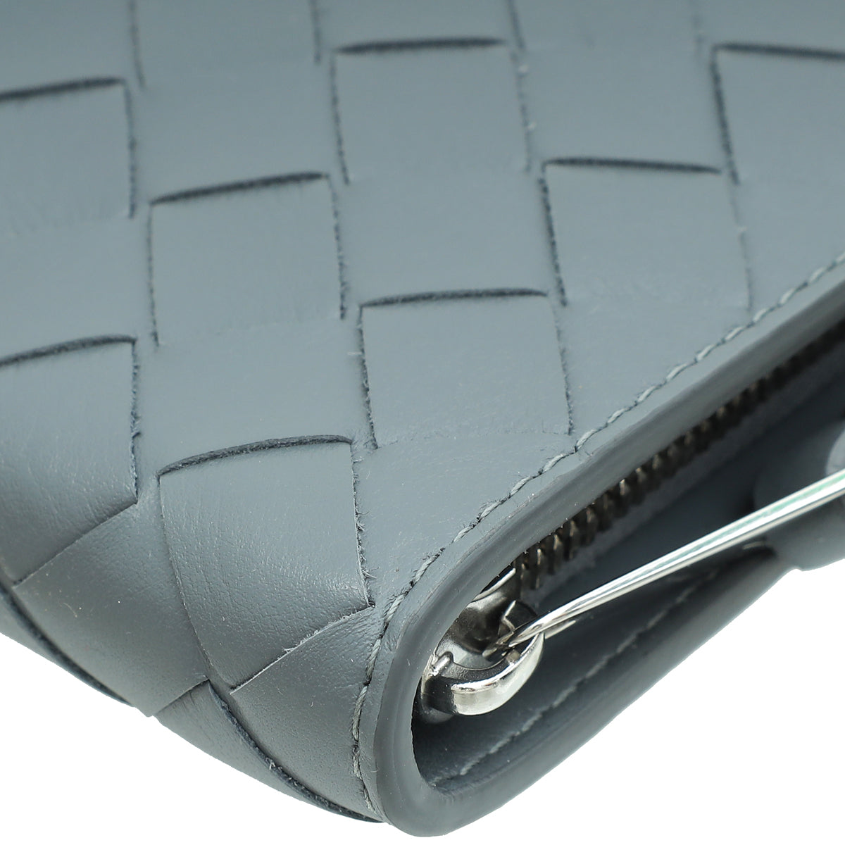 Bottega Veneta Grey Intrecciato Nappa Half Zip Pouch