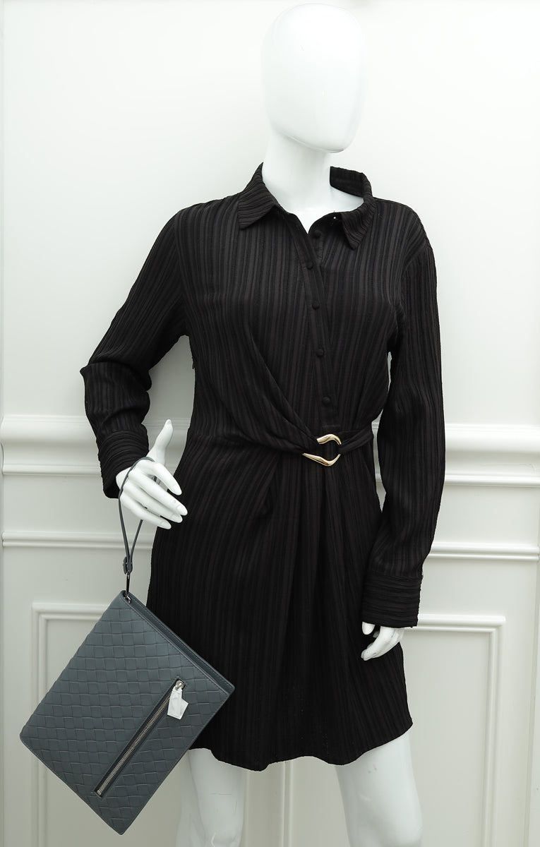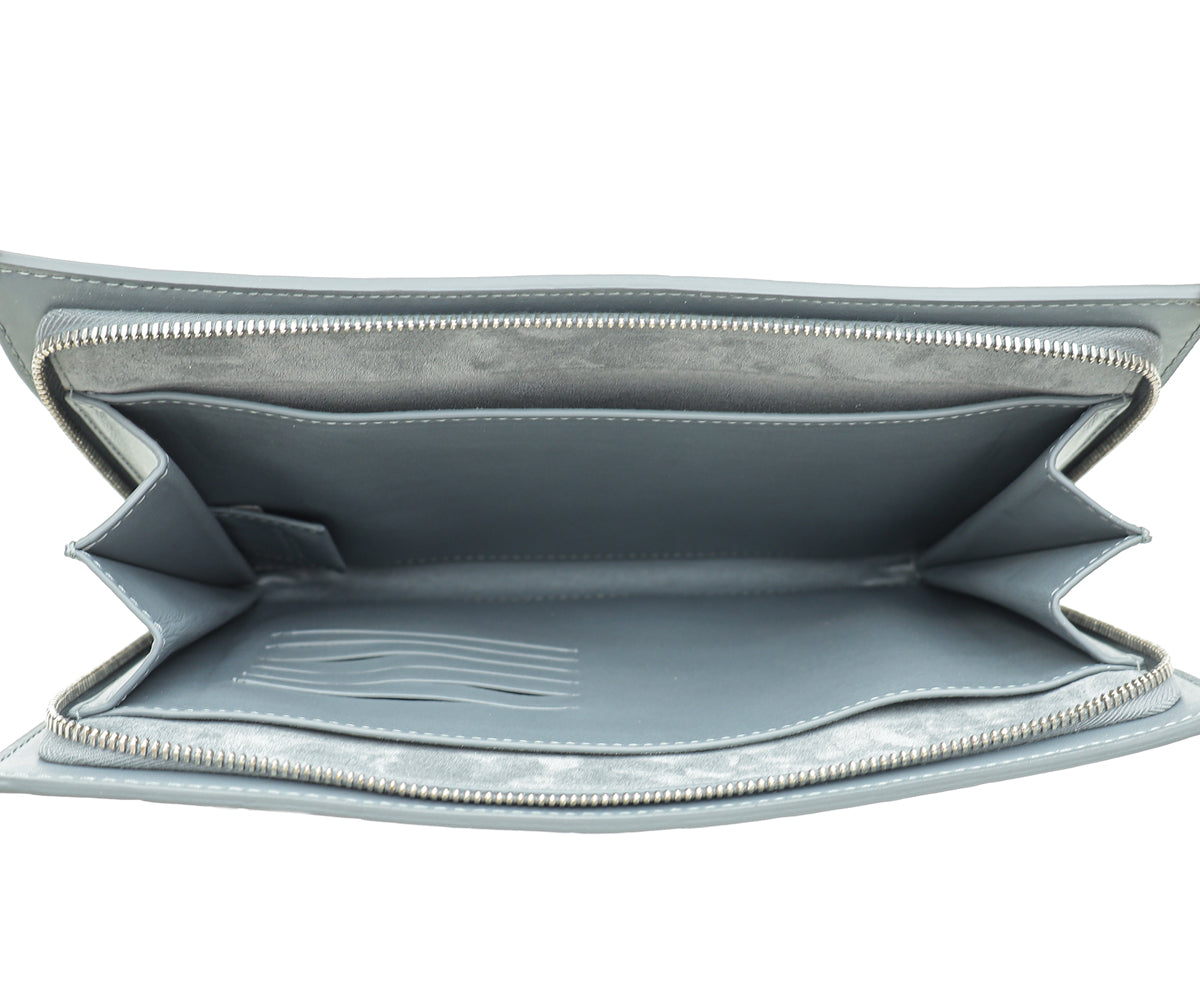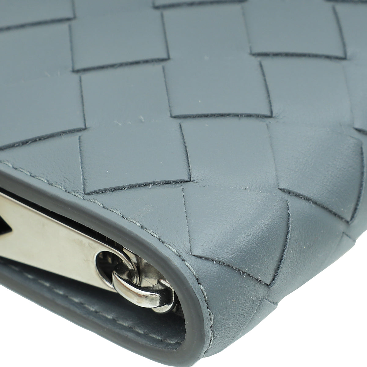 Bottega Veneta Grey Intrecciato Nappa Half Zip Pouch