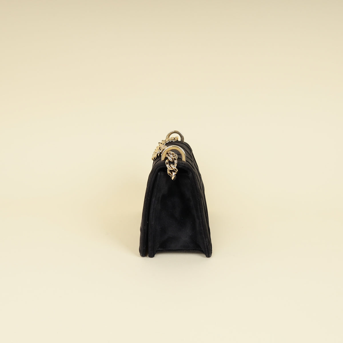 Christian Dior Black Diorama Velvet Small Crystal Lock Shoulder Bag