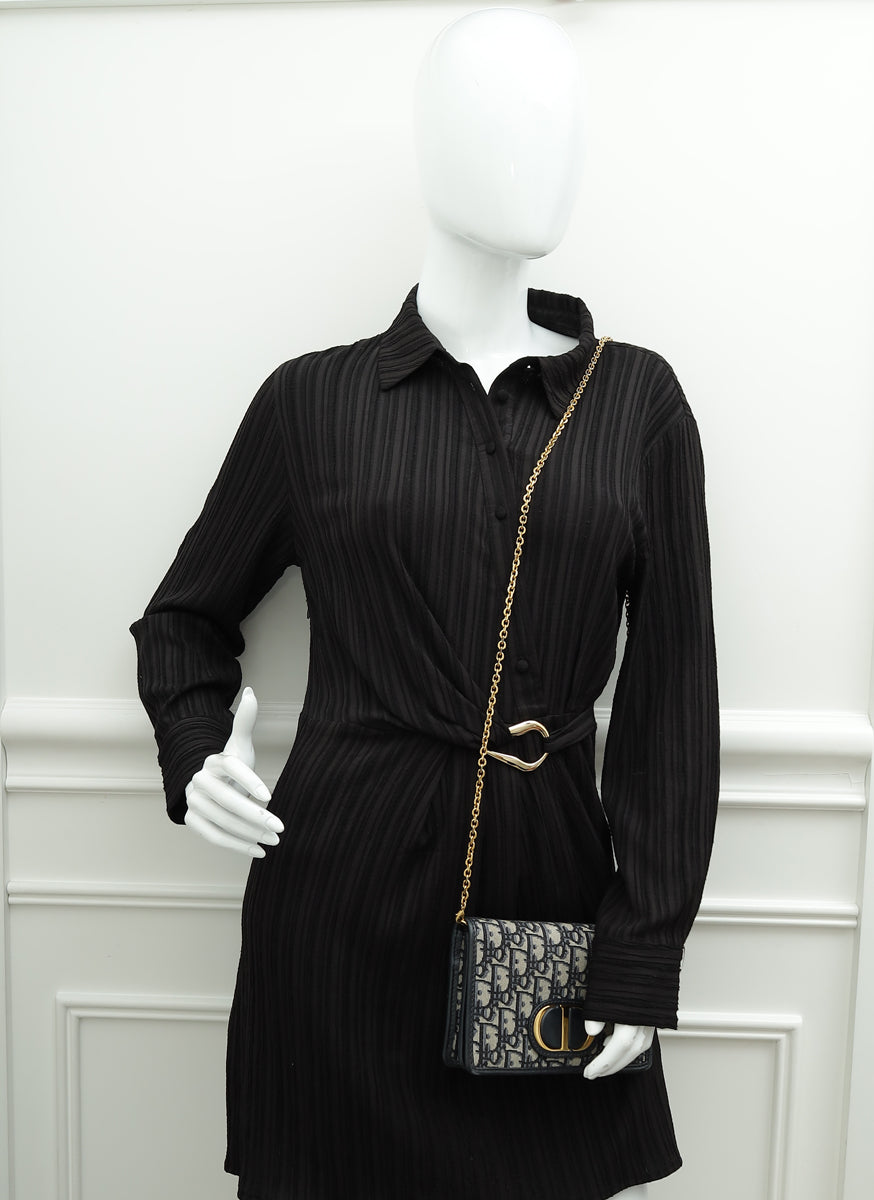 Christian Dior Navy Blue 30 Montaigne Oblique 2 Way Chain Pouch