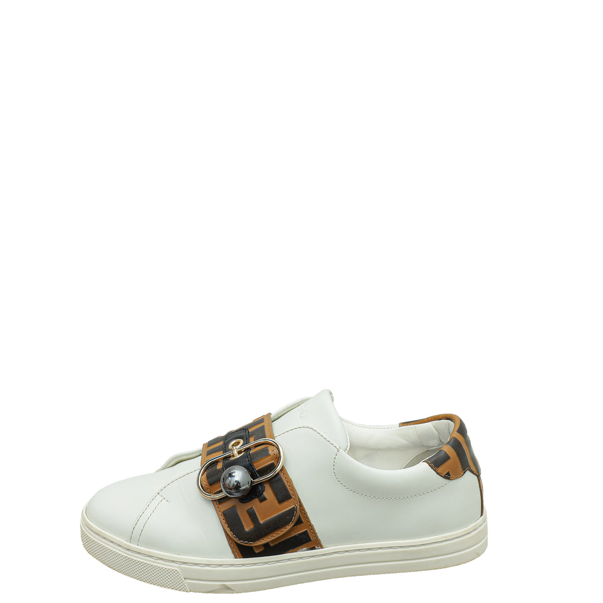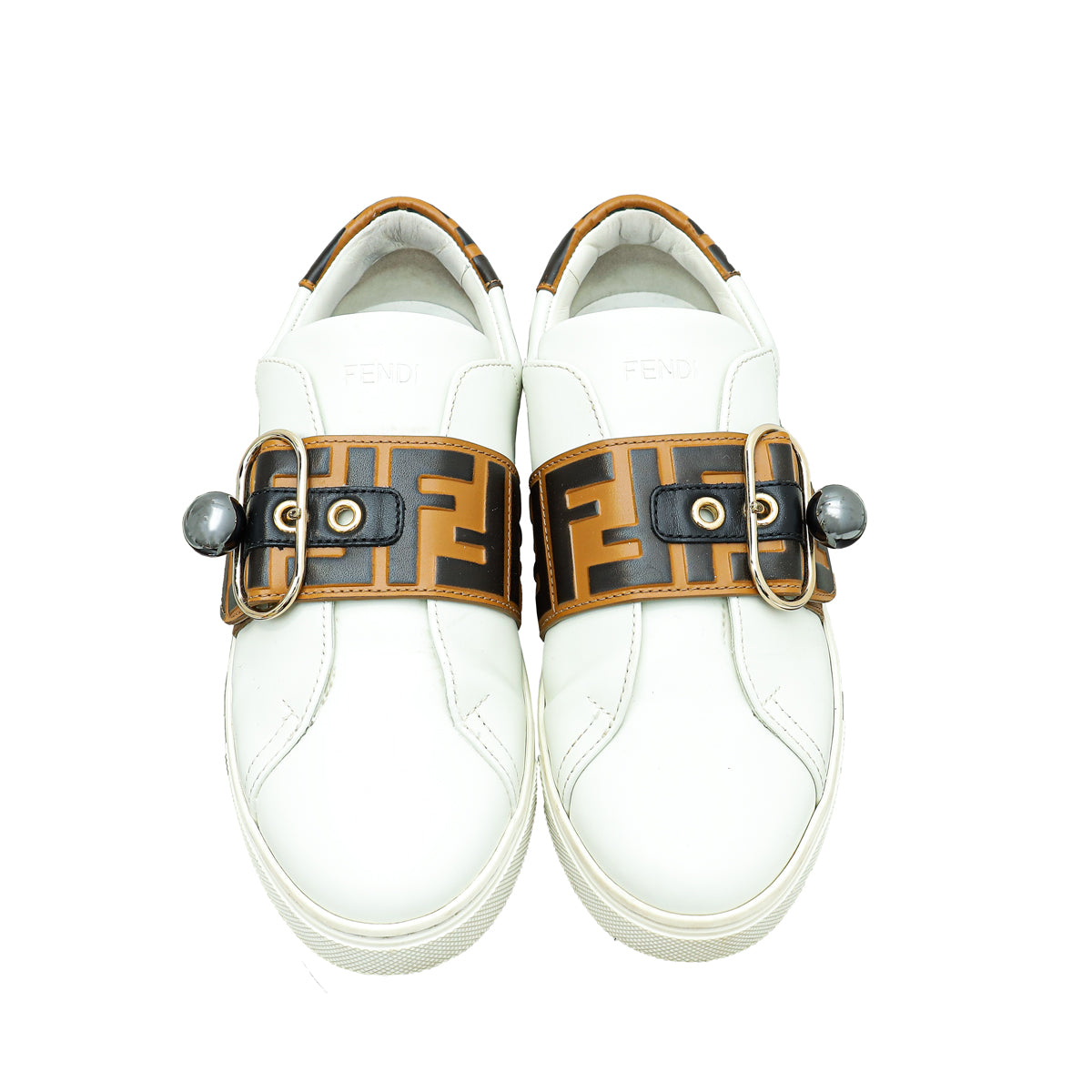 Fendi Bicolor Zucca Buckle Slip On Sneakers 36-Fendi-THE CLOSET