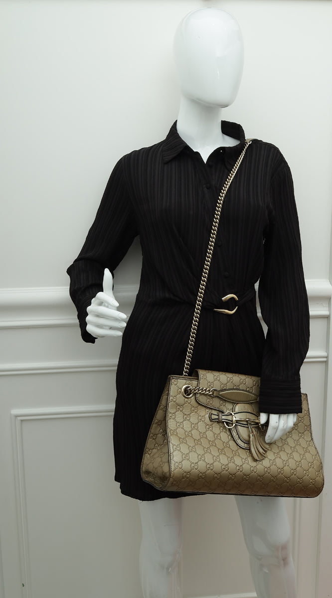 غوتشي ميتاليك الشمبانيا غوتشيسيما إميلي حقيبة كبيرة