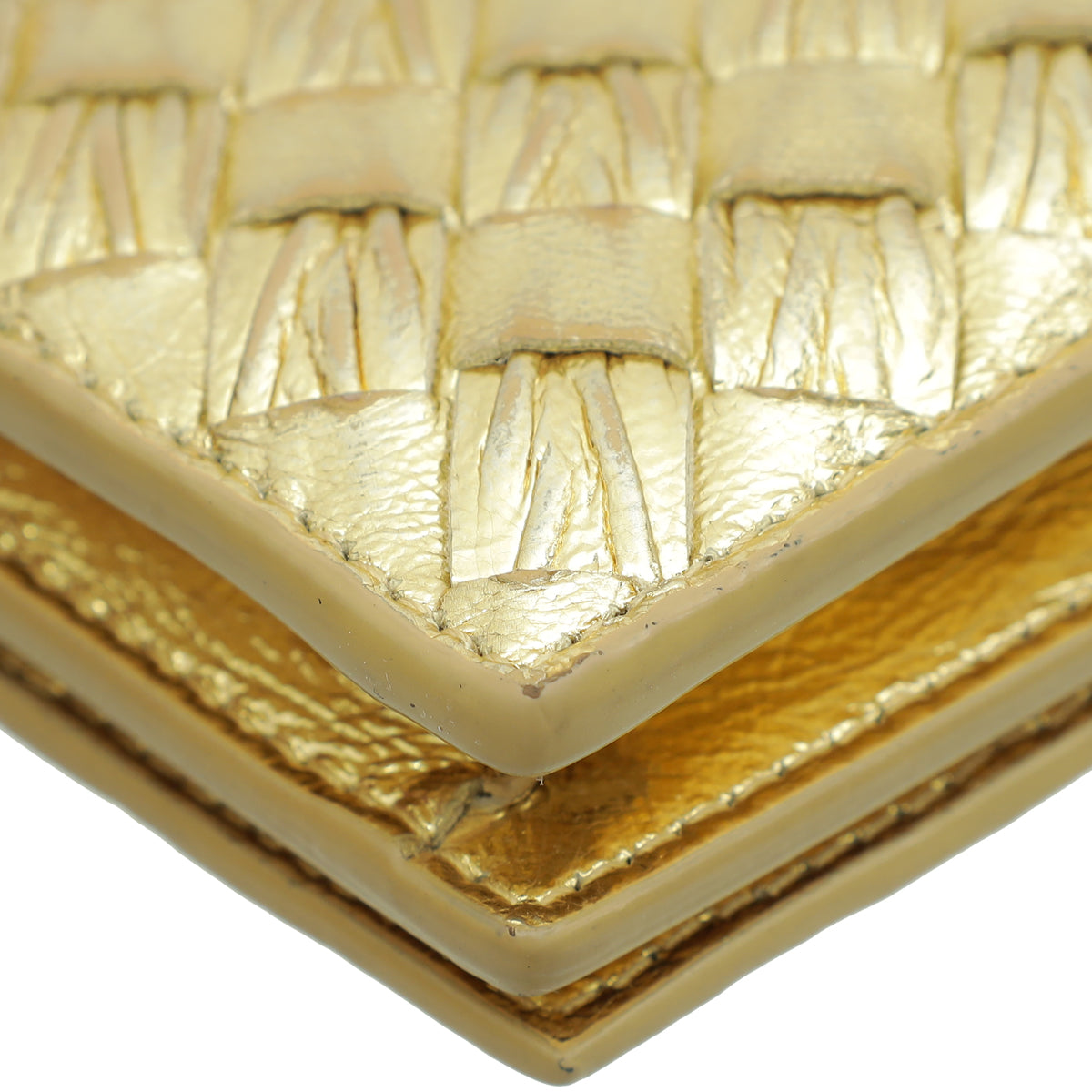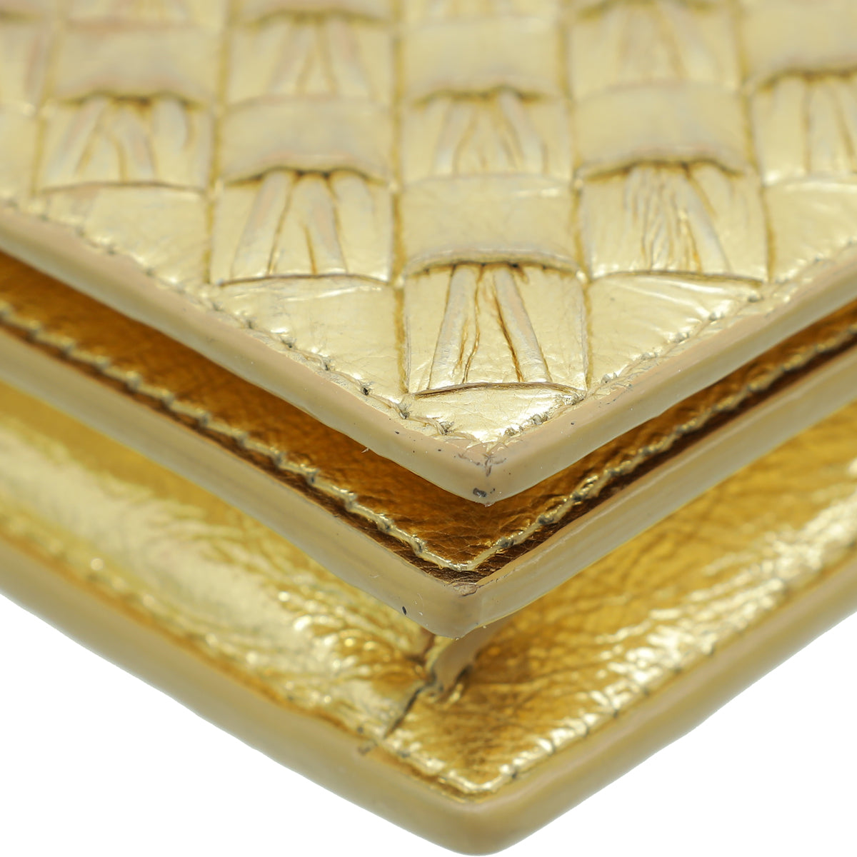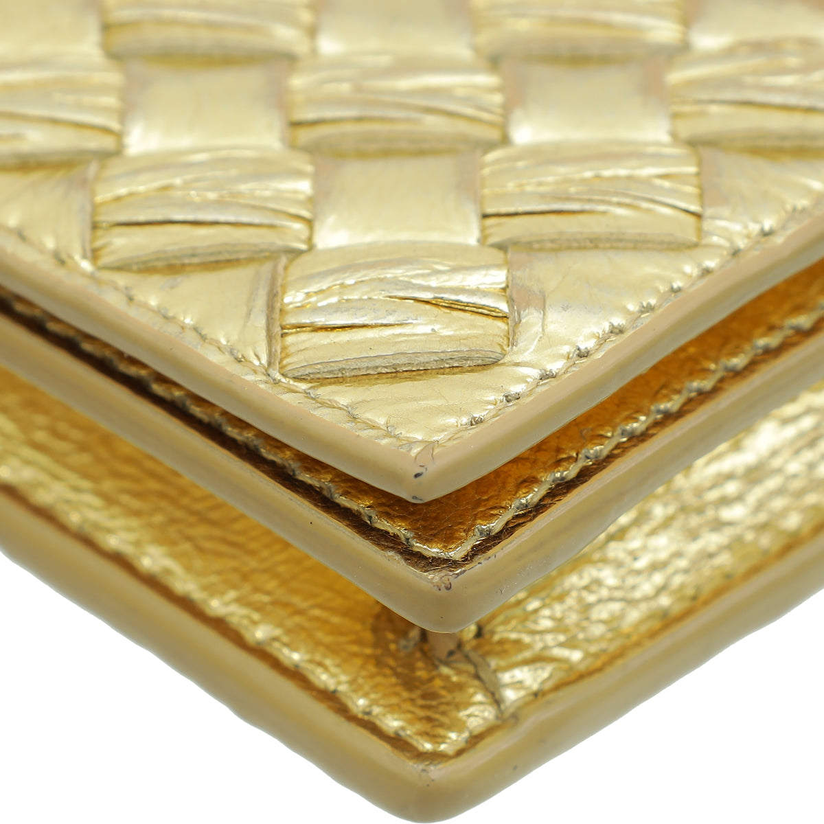 Bottega Veneta Gold Intrecciato Laminated Business Card Case