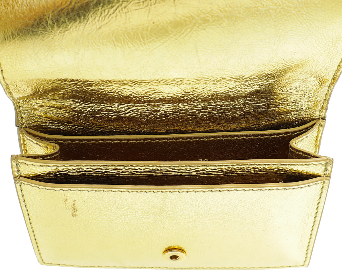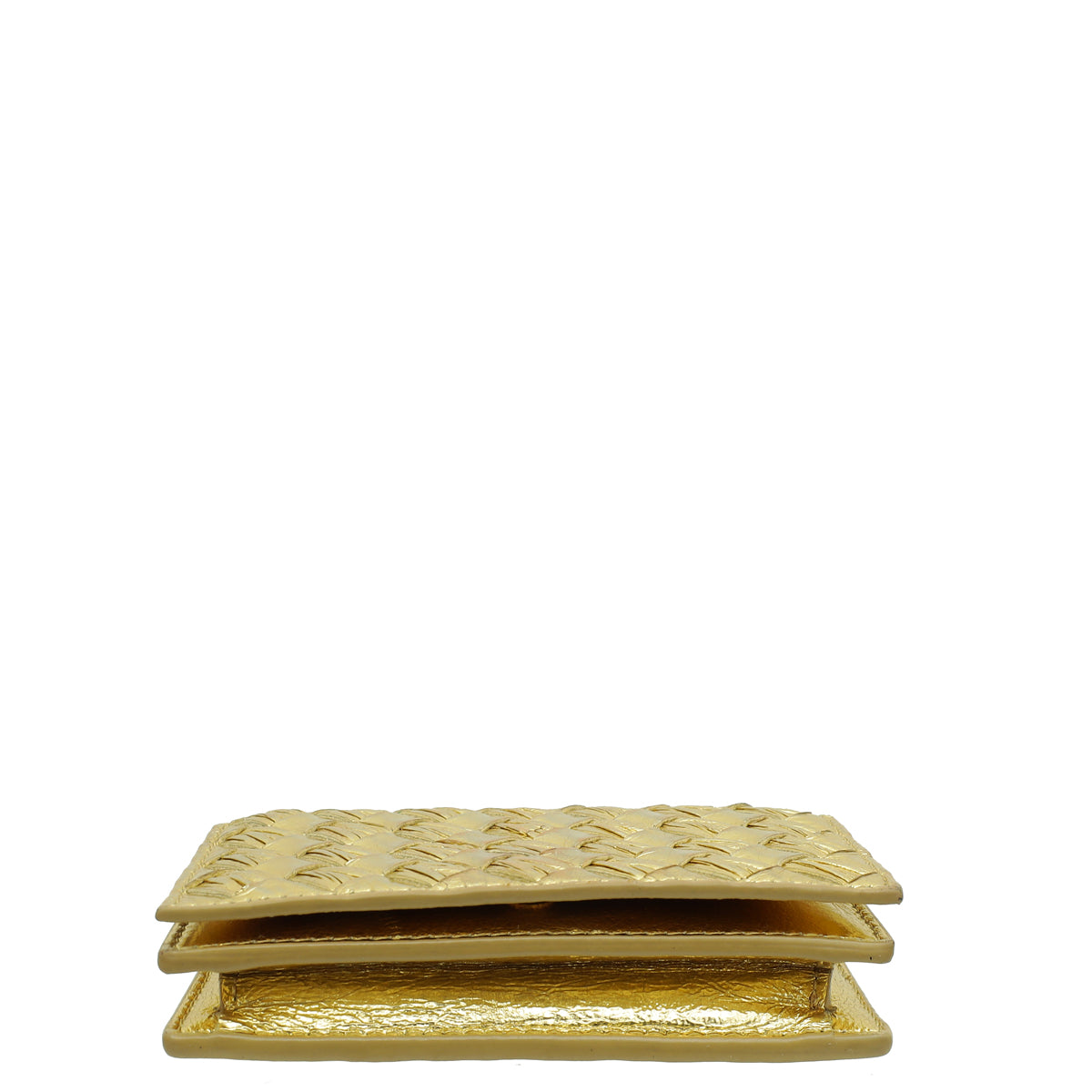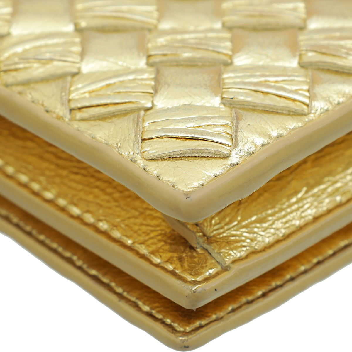 Bottega Veneta Gold Intrecciato Laminated Business Card Case