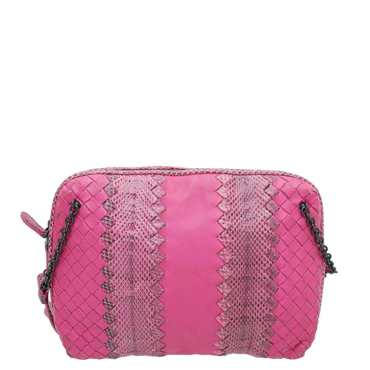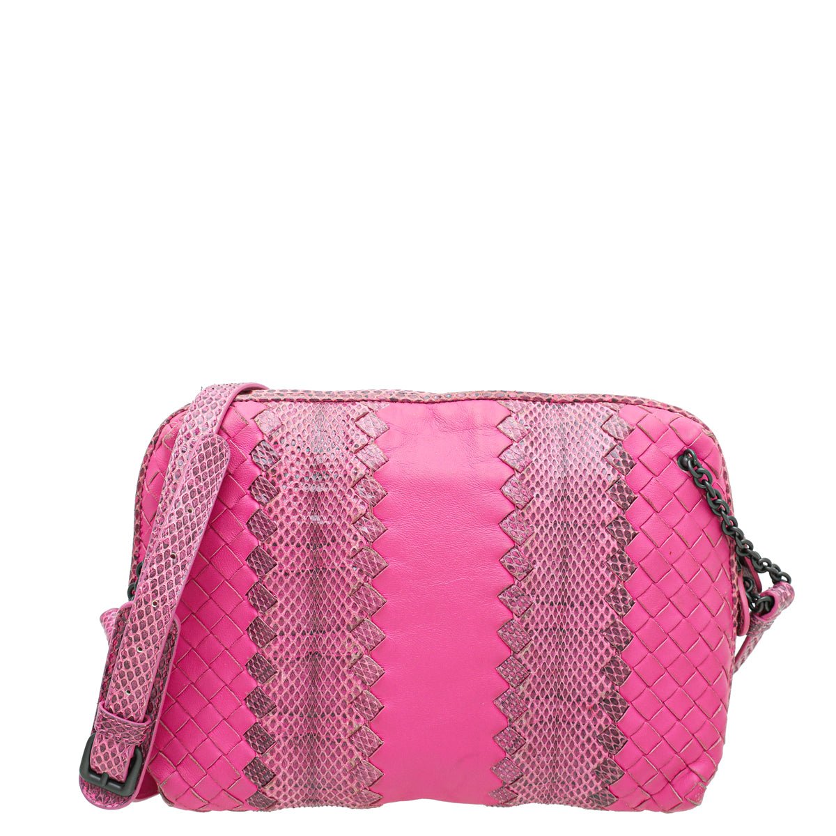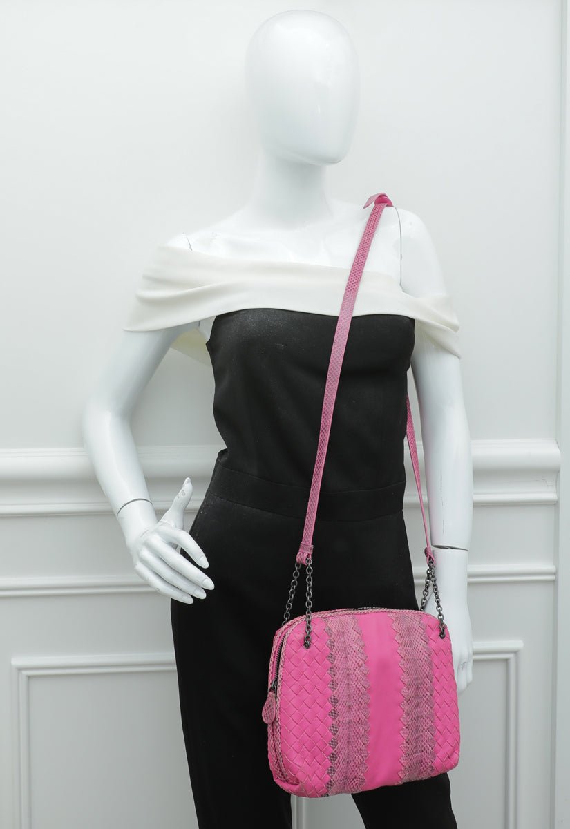 Bottega Veneta Fuchsia intrecciato crossbody حقيبة