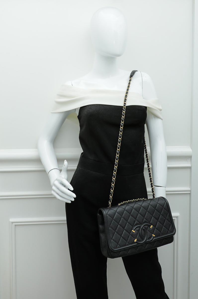 شانيل أسود cc filigree رفرف كيس متوسطة