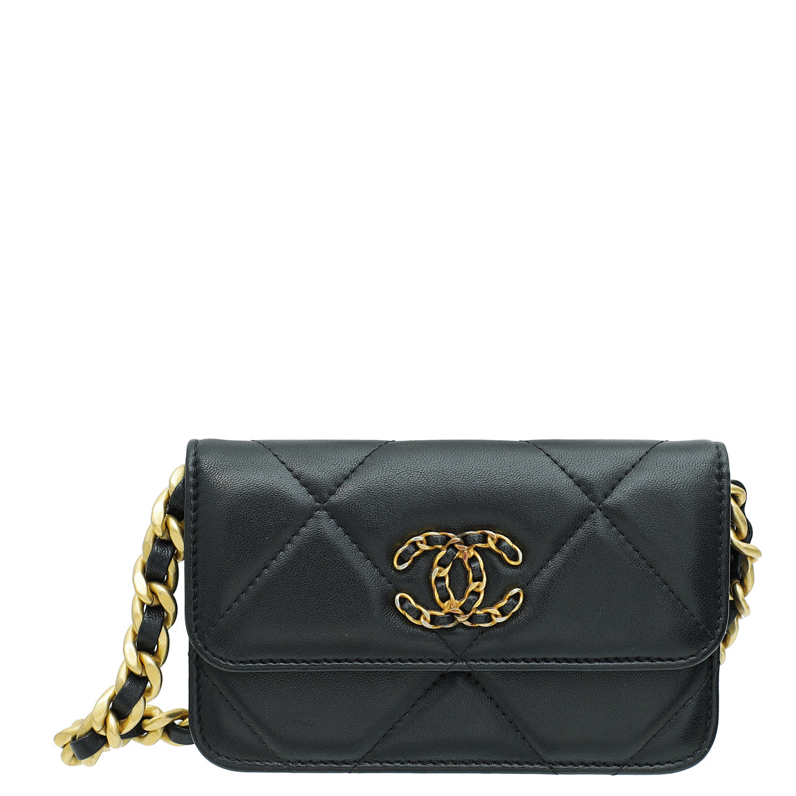 Chanel Black CC 19 Mini Coin Purse With Chain
