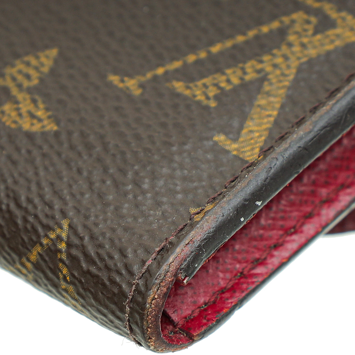 - Material: Brown Monogram Coated Canvas and Fuchsia Leather Trim