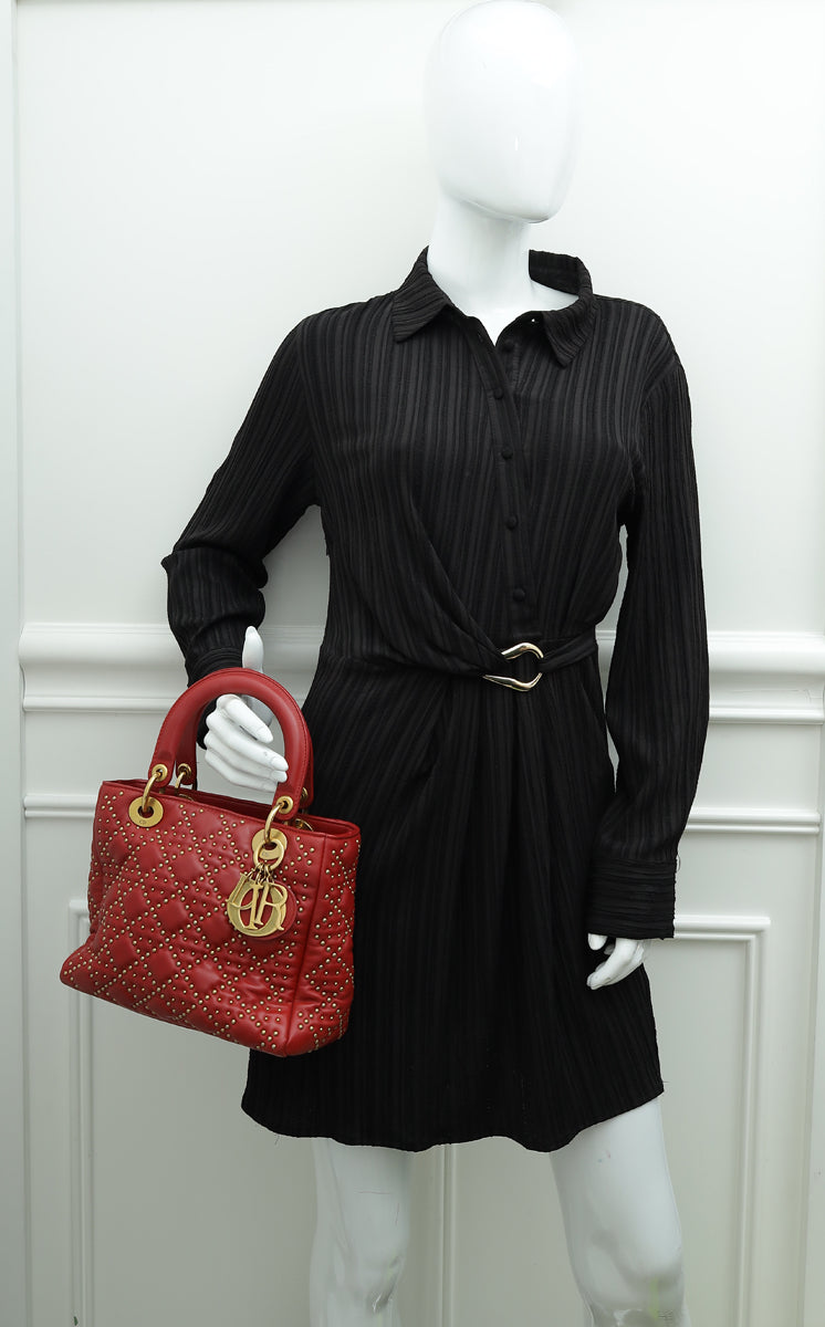 Christian Dior Red Lady Dior Studded Supple Medium Bag-Christian Dior-THE CLOSET