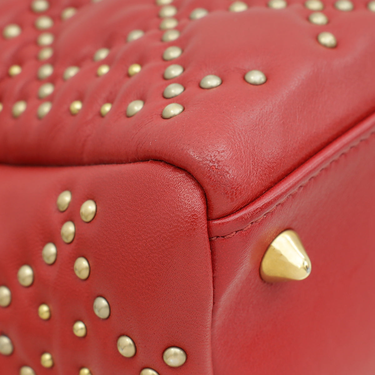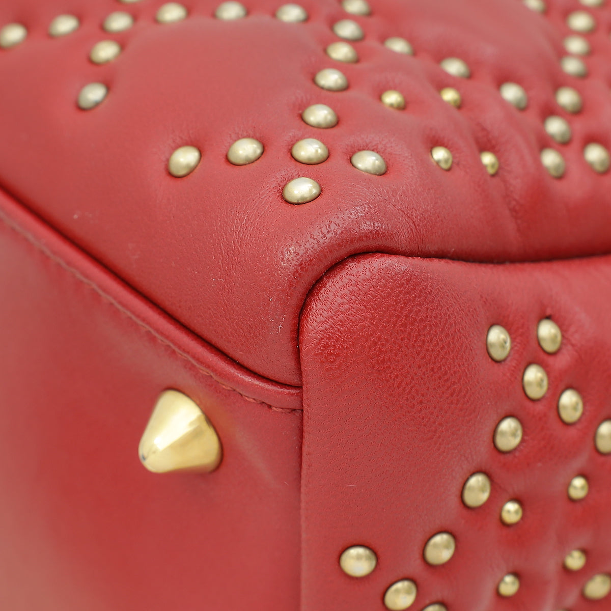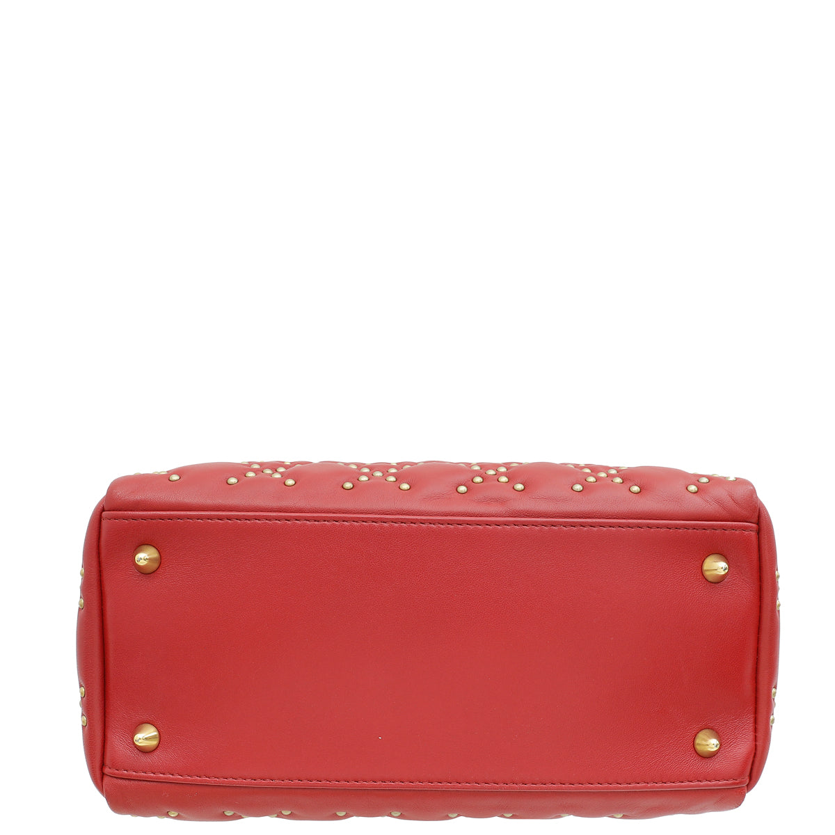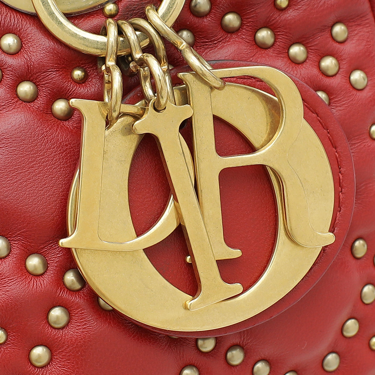 Christian Dior Red Lady Dior Studded Supple Medium Bag