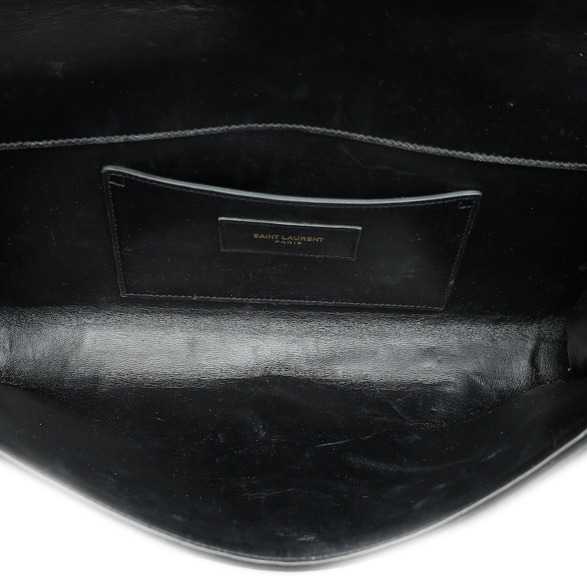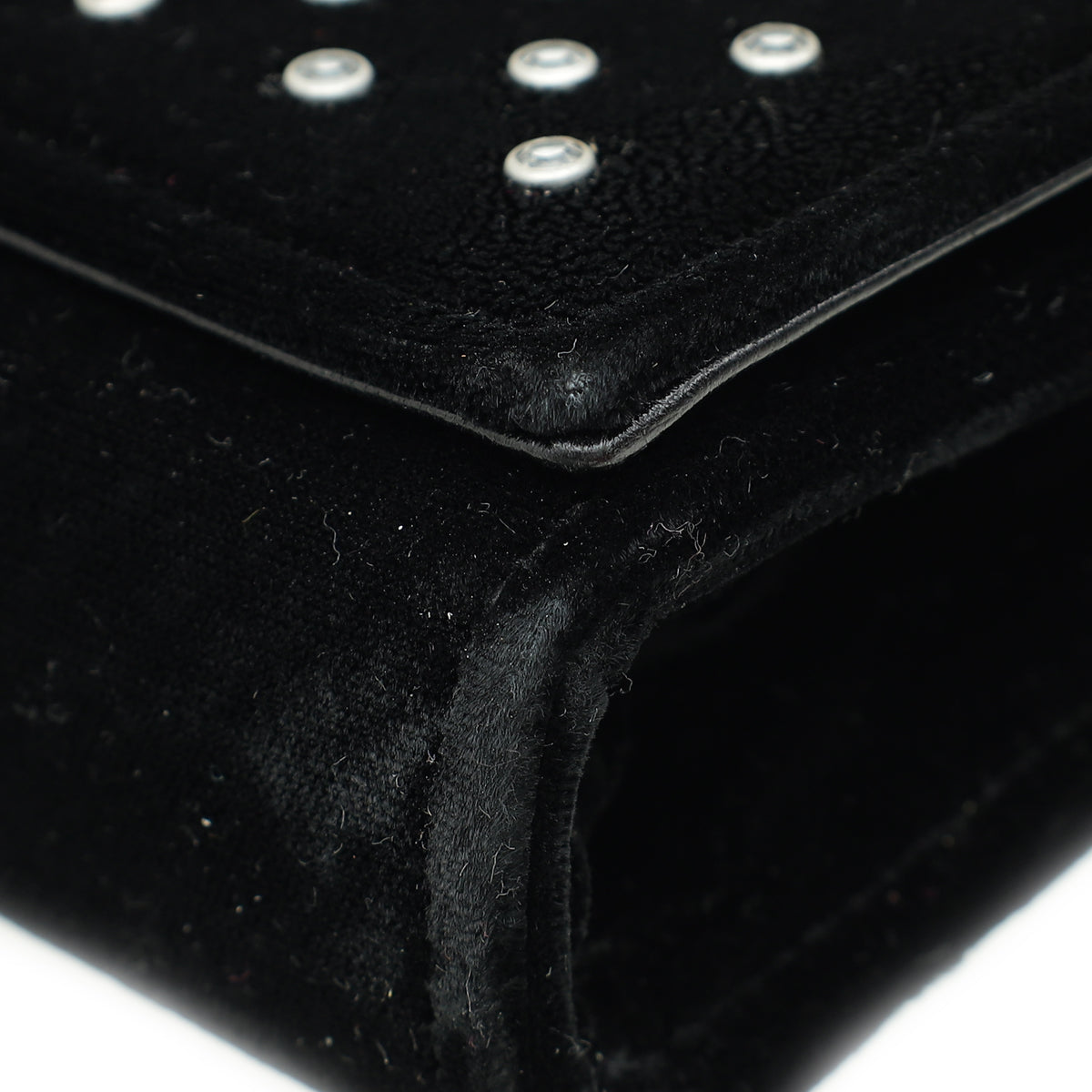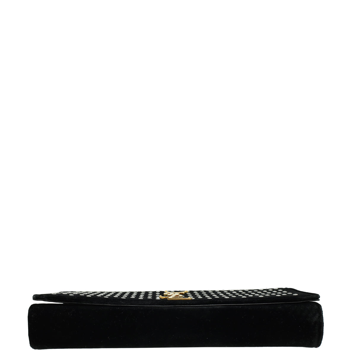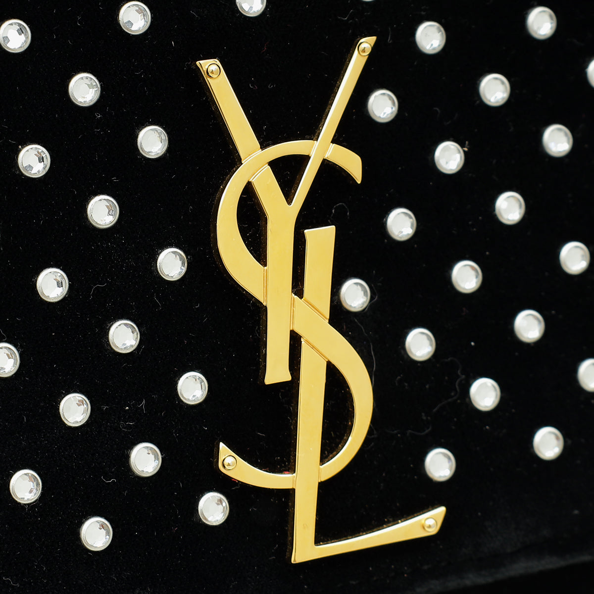 YSL Black Velvet Crystal Studded Classic Monogram Clutch