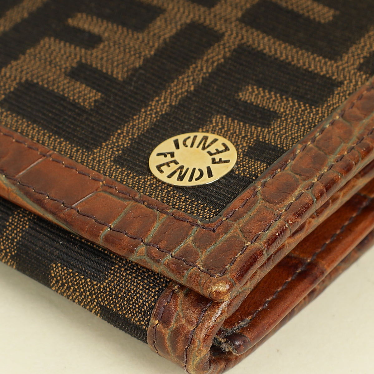 Fendi Bicolor Zucca Croco Embossed Continental Wallet