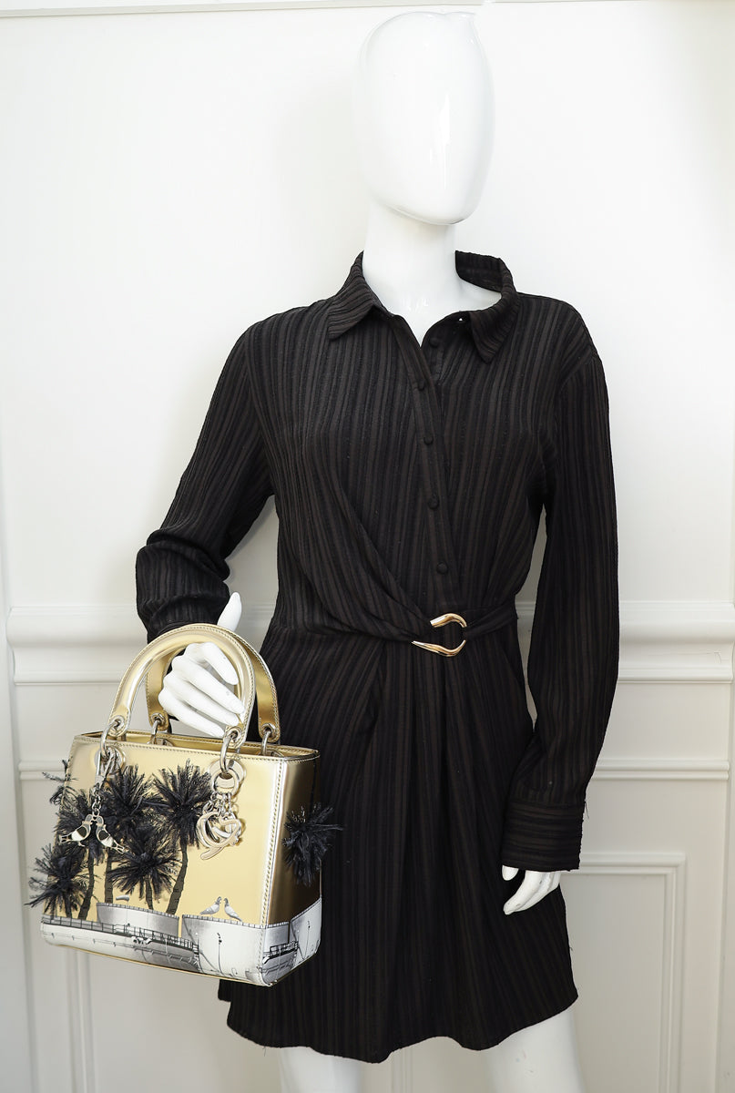 Christian Dior Champagne x Manal Aldowayan Lady Dior Medium Bag W/ Pouch