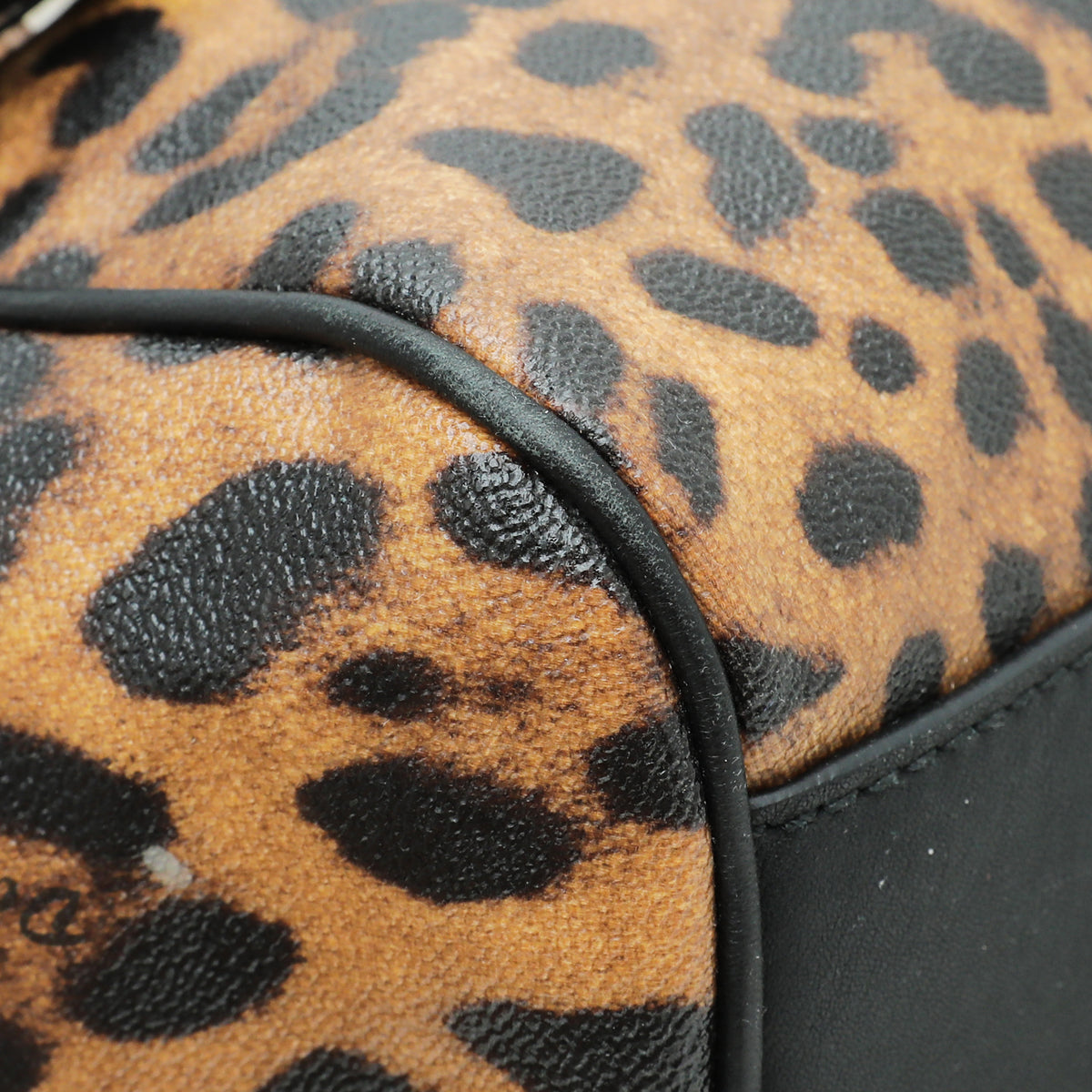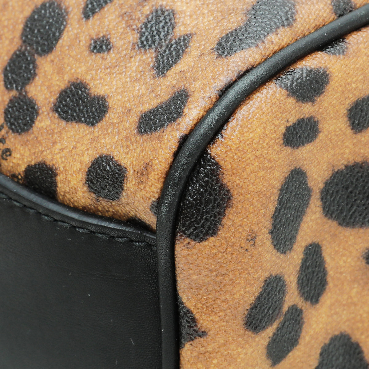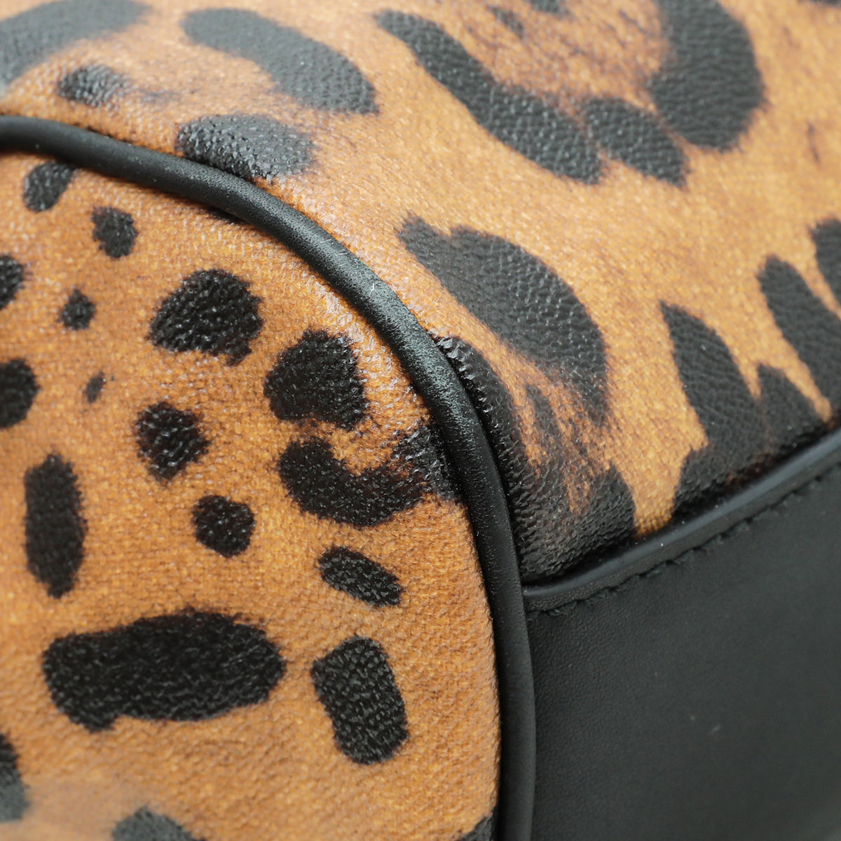 مادة : قماش طباعة الفهد البني مع تقليم الجلد الأسود