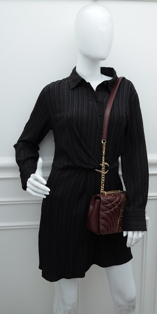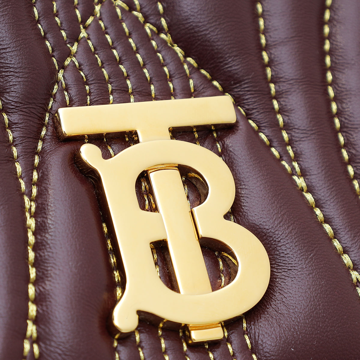 حقيبة بربري لولا ذات سلسلة صغيرة مبطنة بلون كستنائي داكن