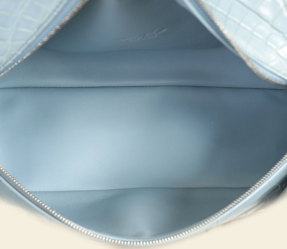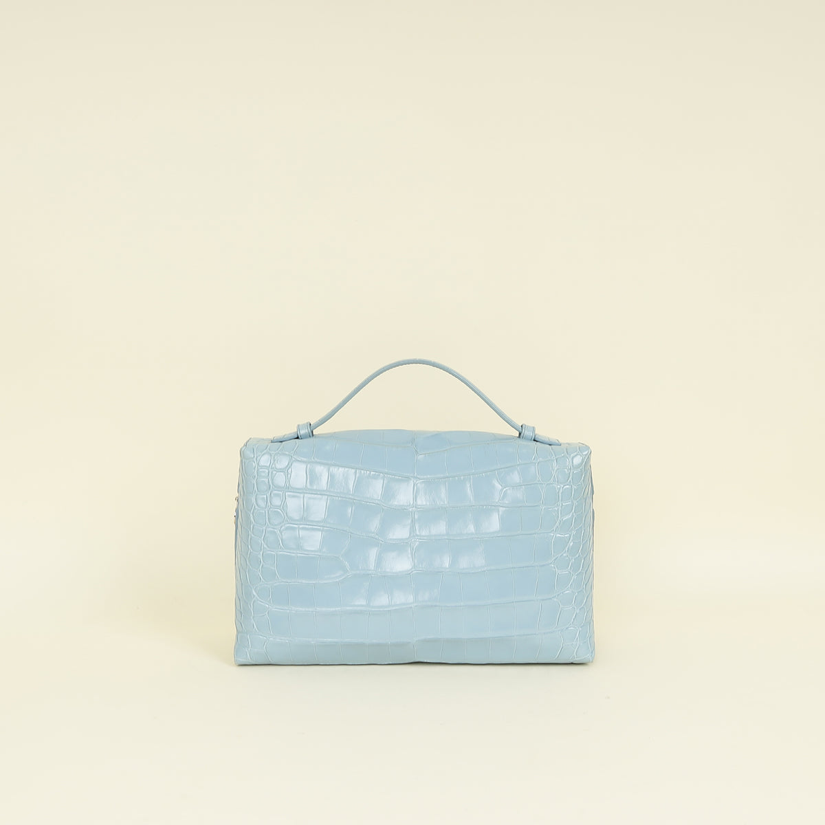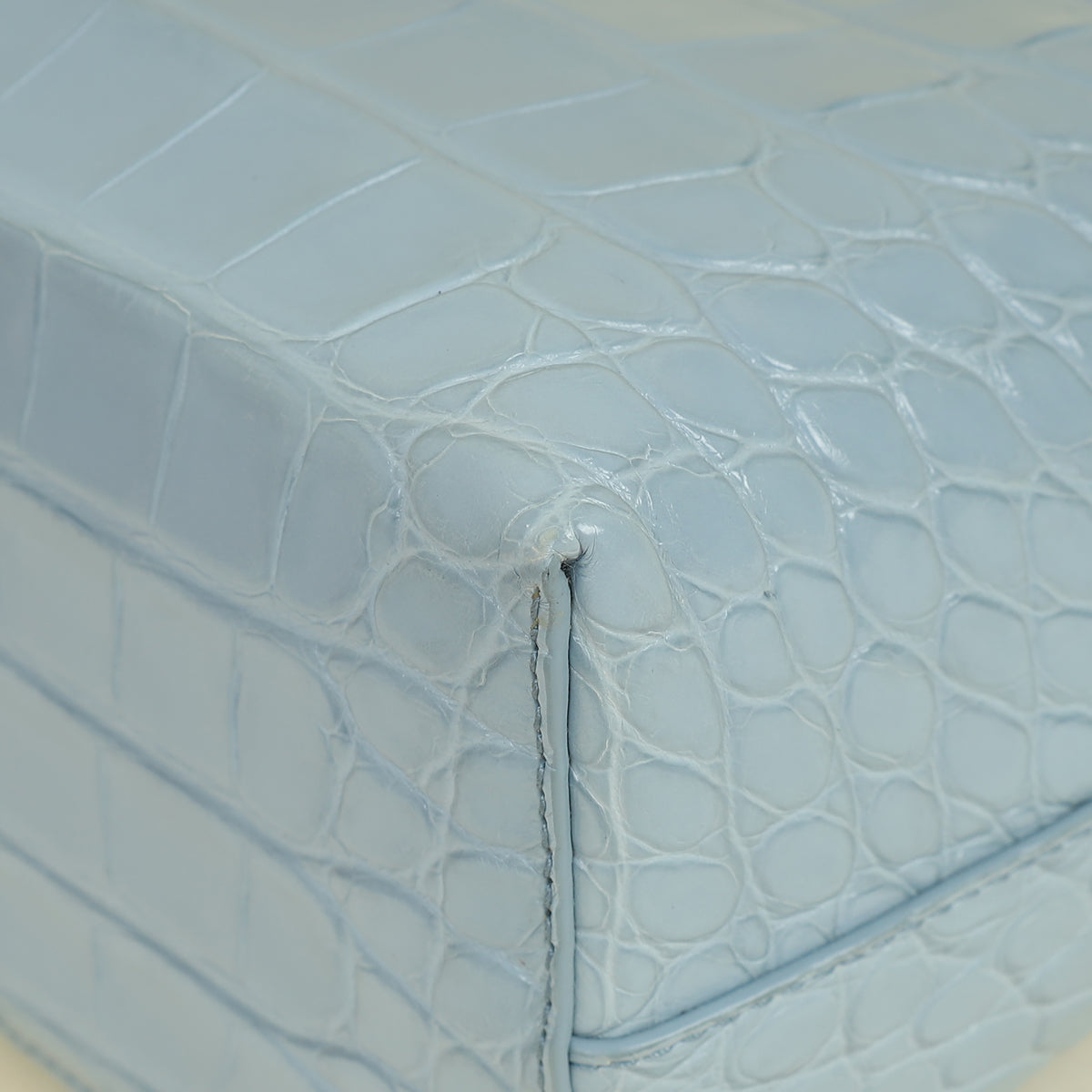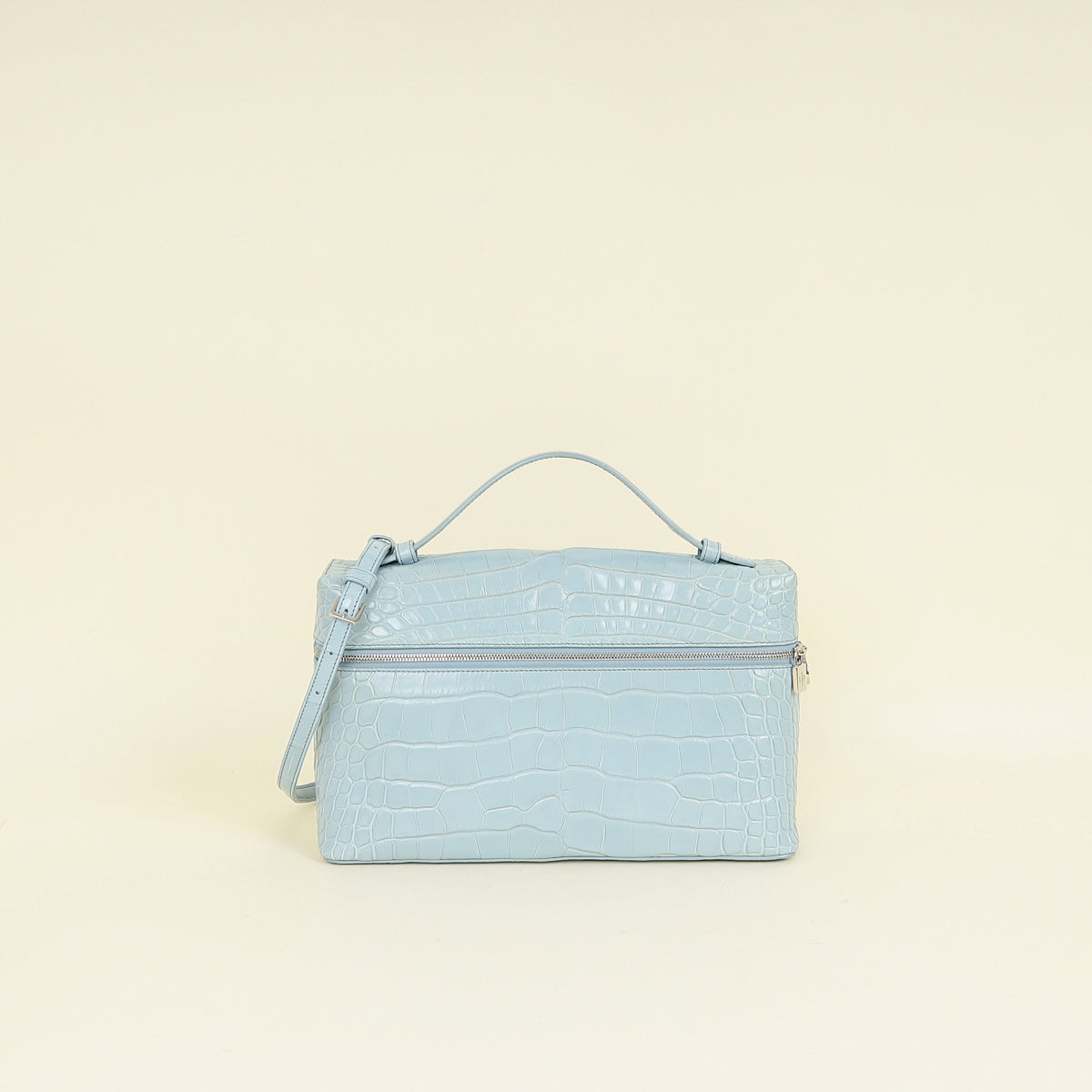 Loro Piana Blue Celadon Extra Pocket L27 Soft Shiny Alligator Bag