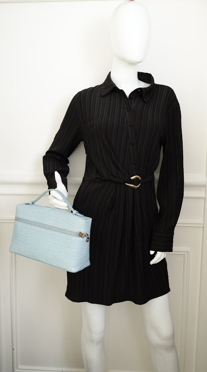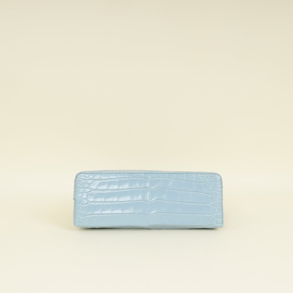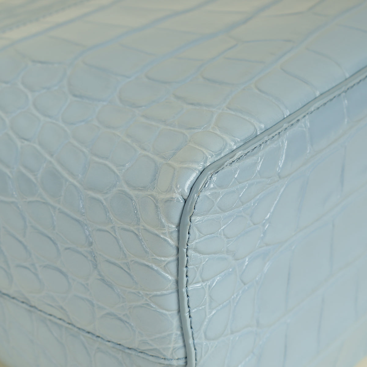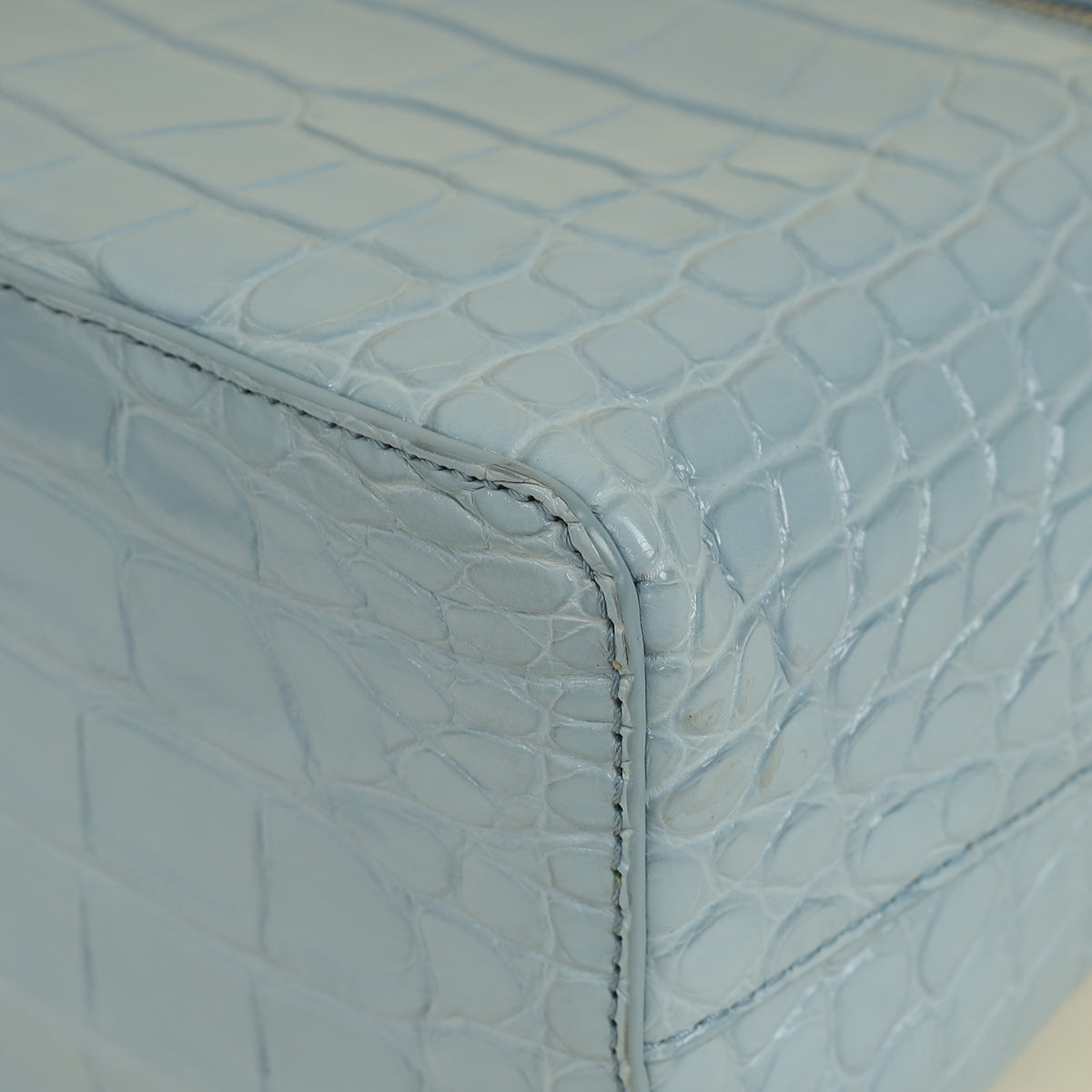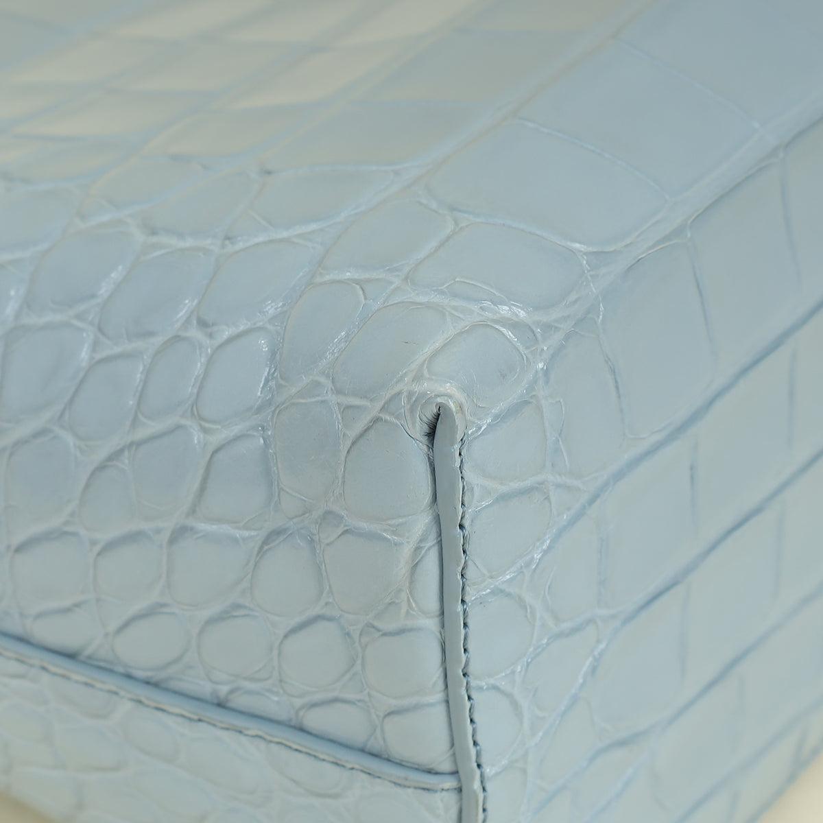 Loro Piana Blue Celadon Extra Pocket L27 Soft Shiny Alligator Bag