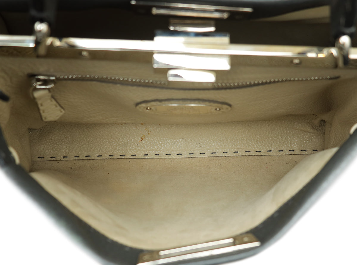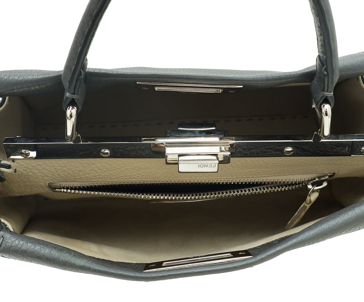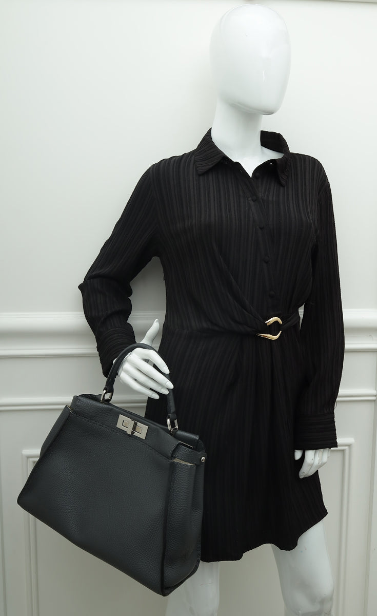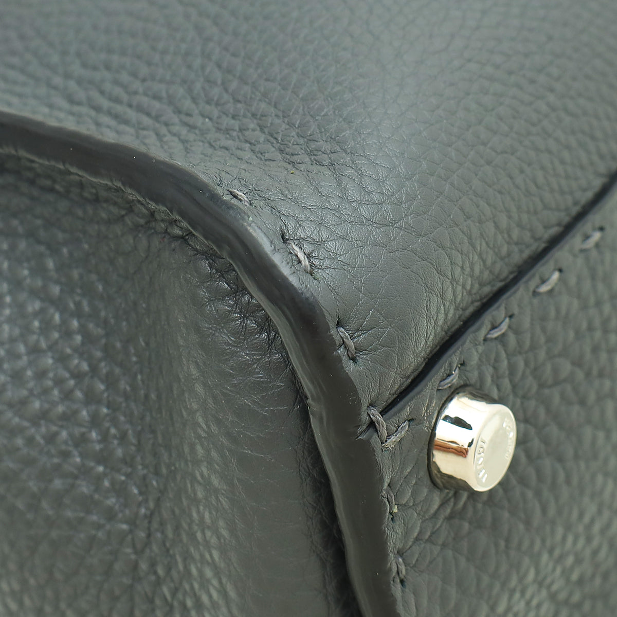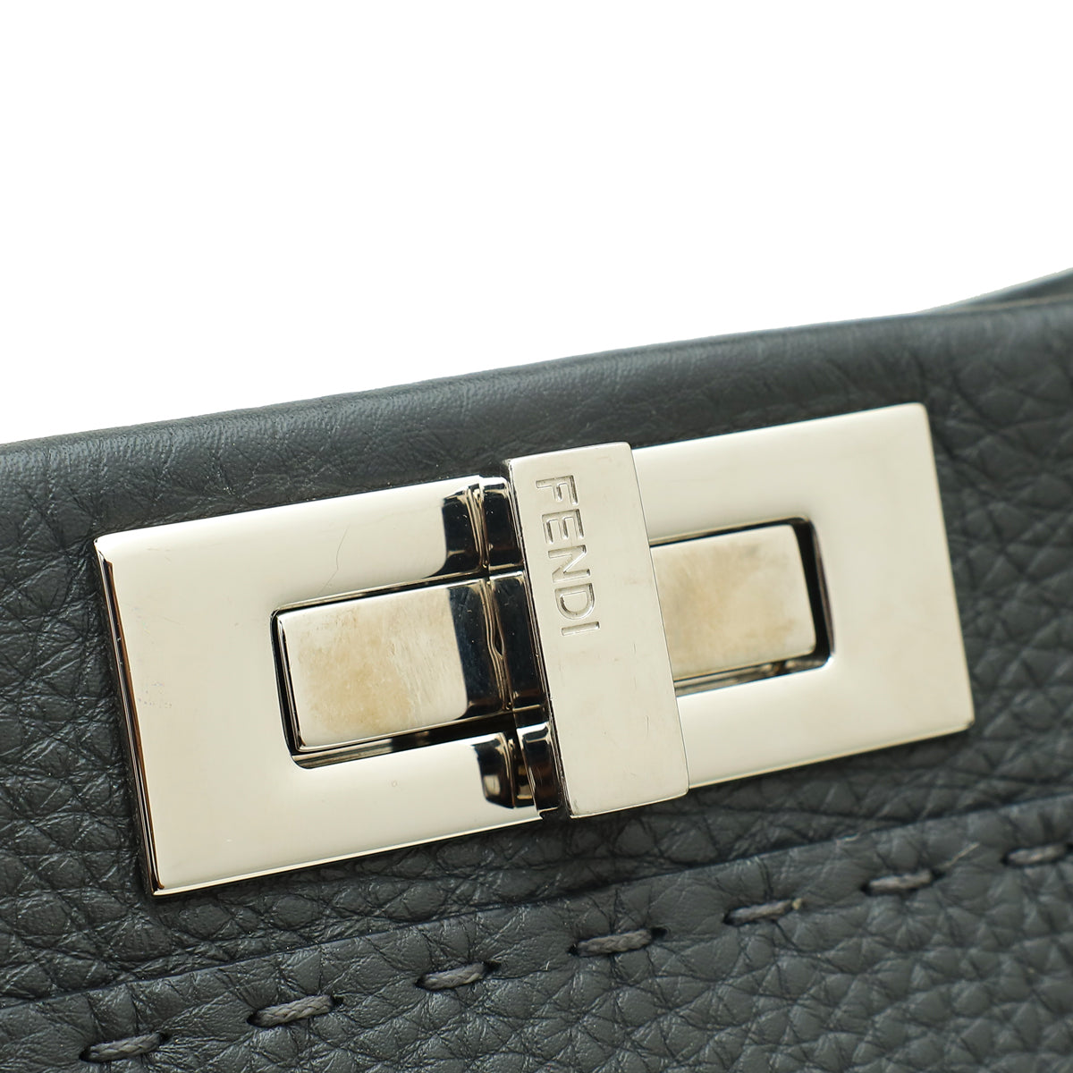 حقيبة فندي بيكابو سيليريا العادية باللون الرمادي الداكن مع حزام مزين بالزهور