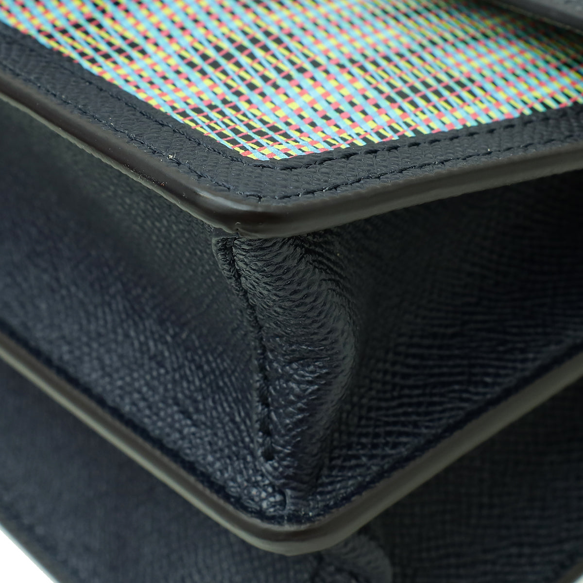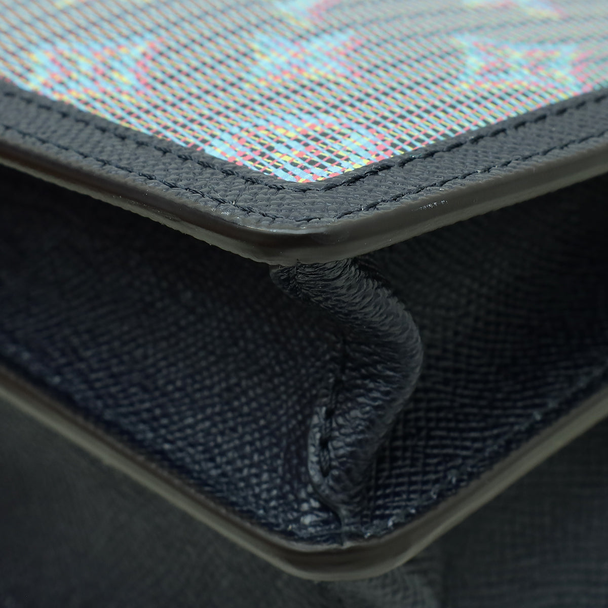 - المادة : مونوجرام أزرق قماش مطلي مع زخرفة جلدية