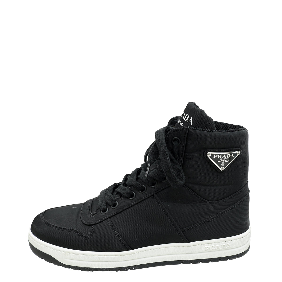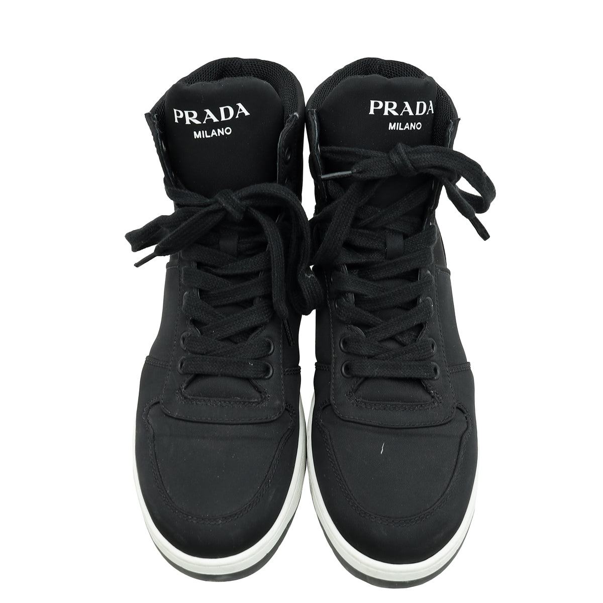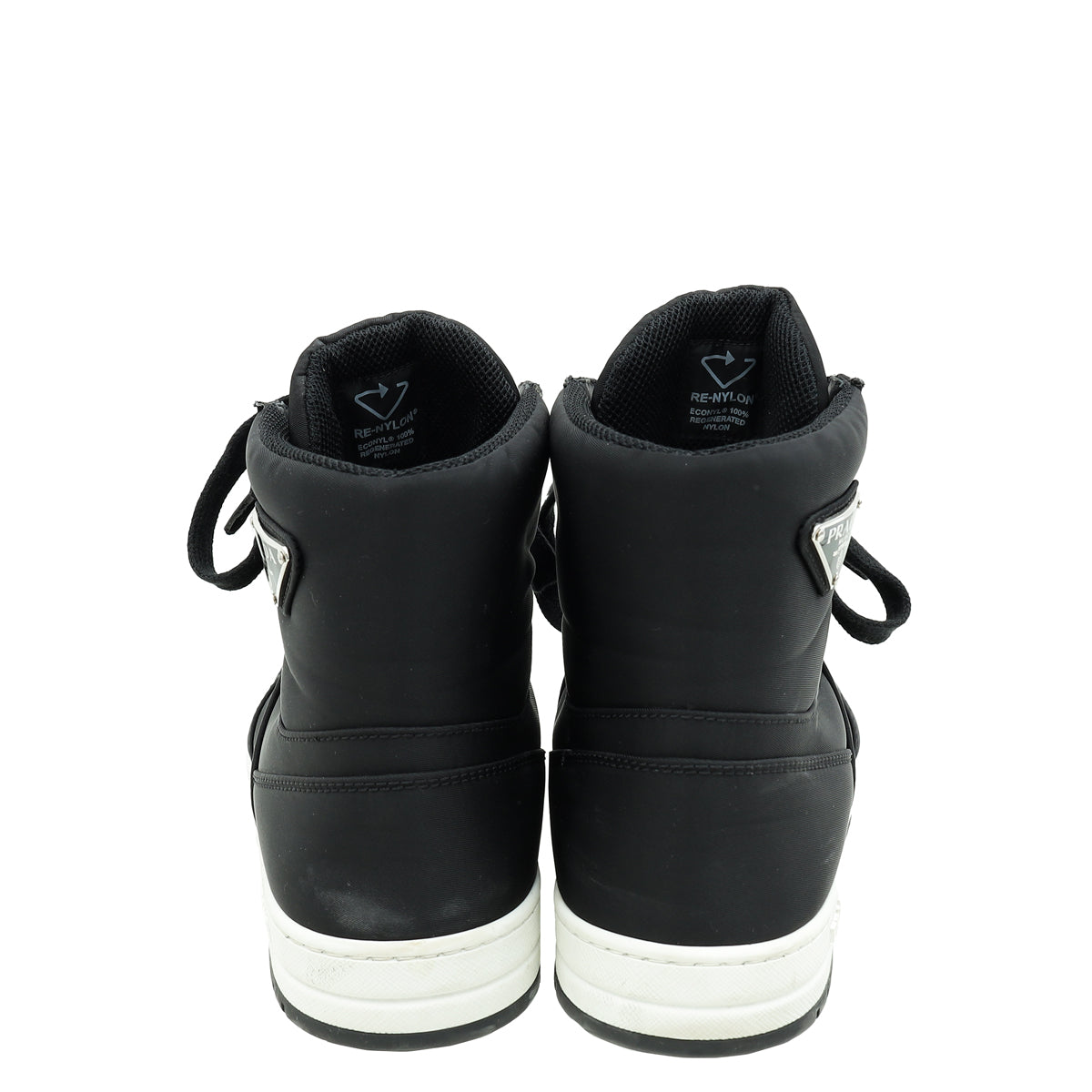 Prada Black Re-Nylon Gabardine High Top Sneakers 38.5