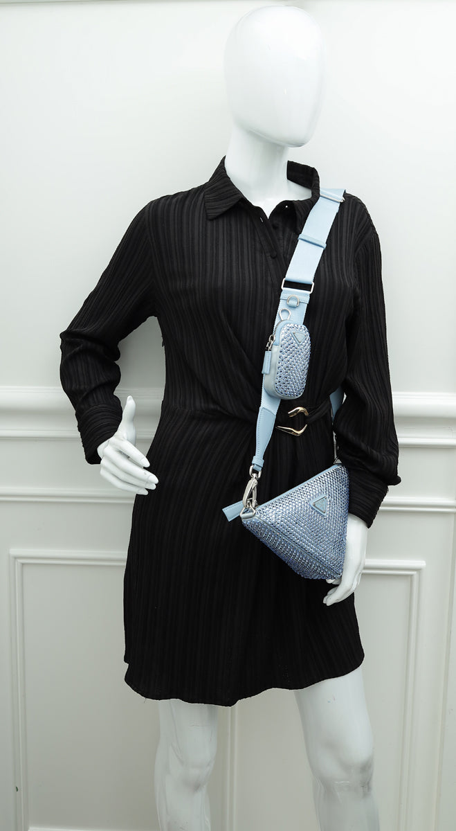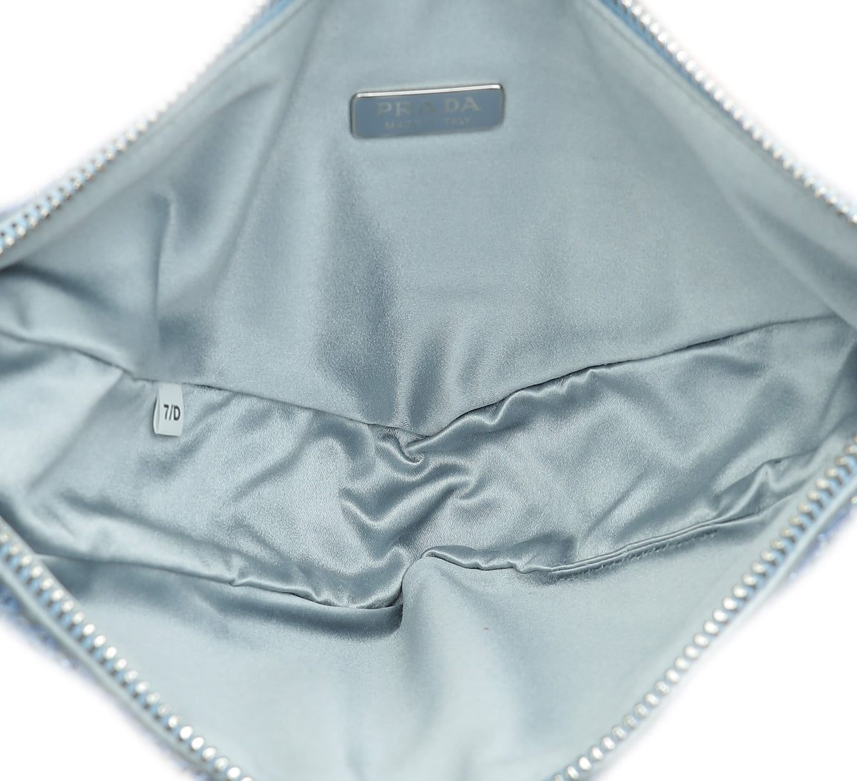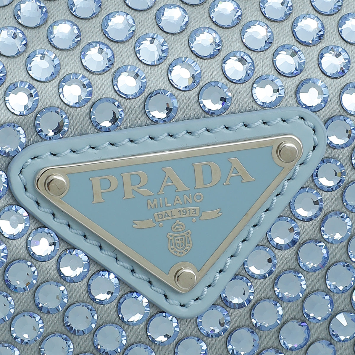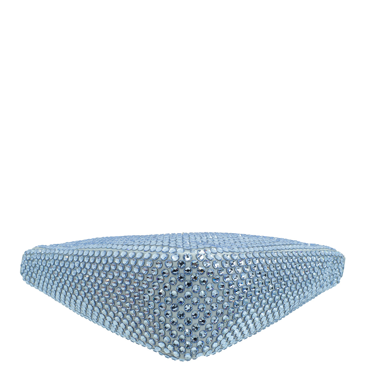 Prada Celeste Blue Triangle Studded Embellished Satin Crossbody Bag