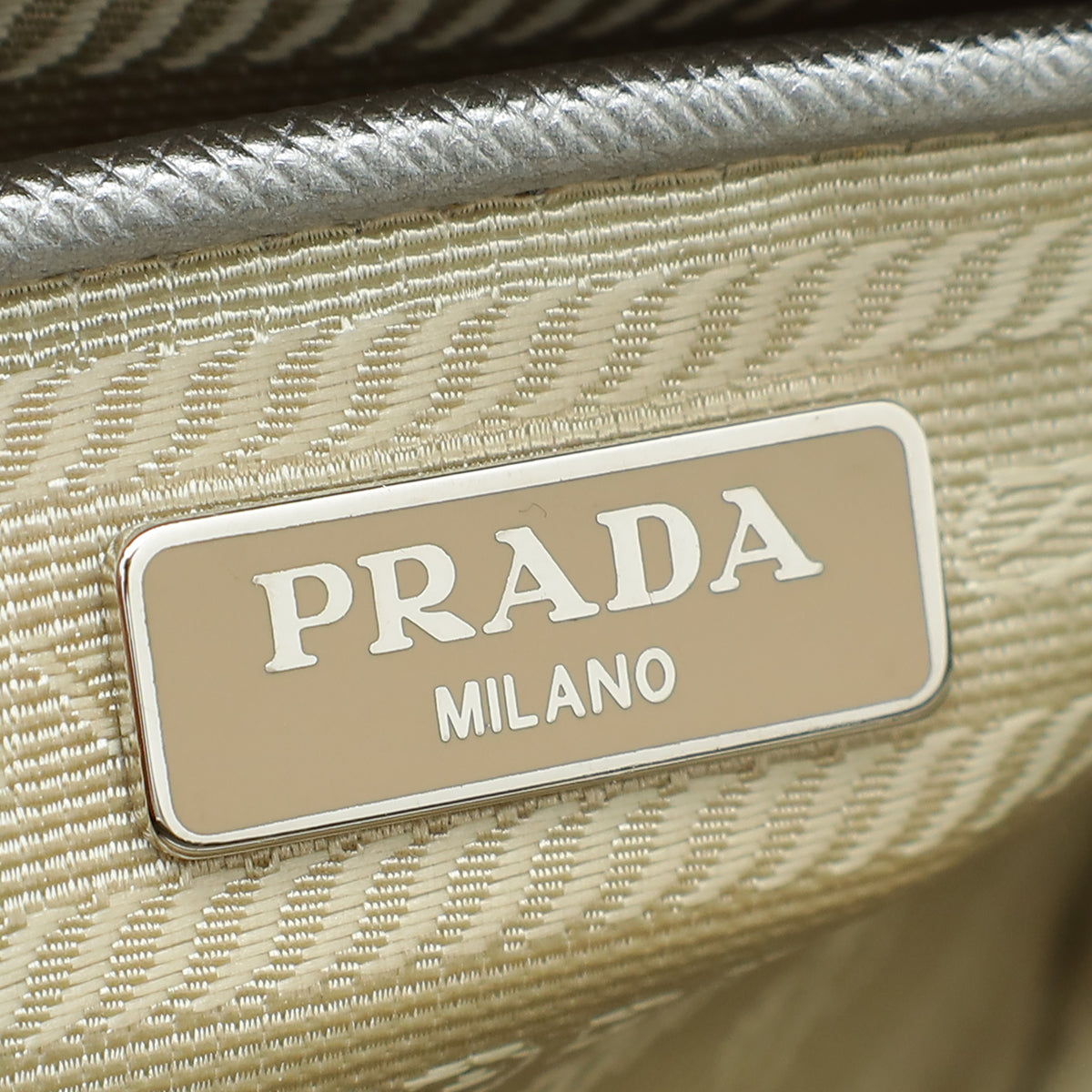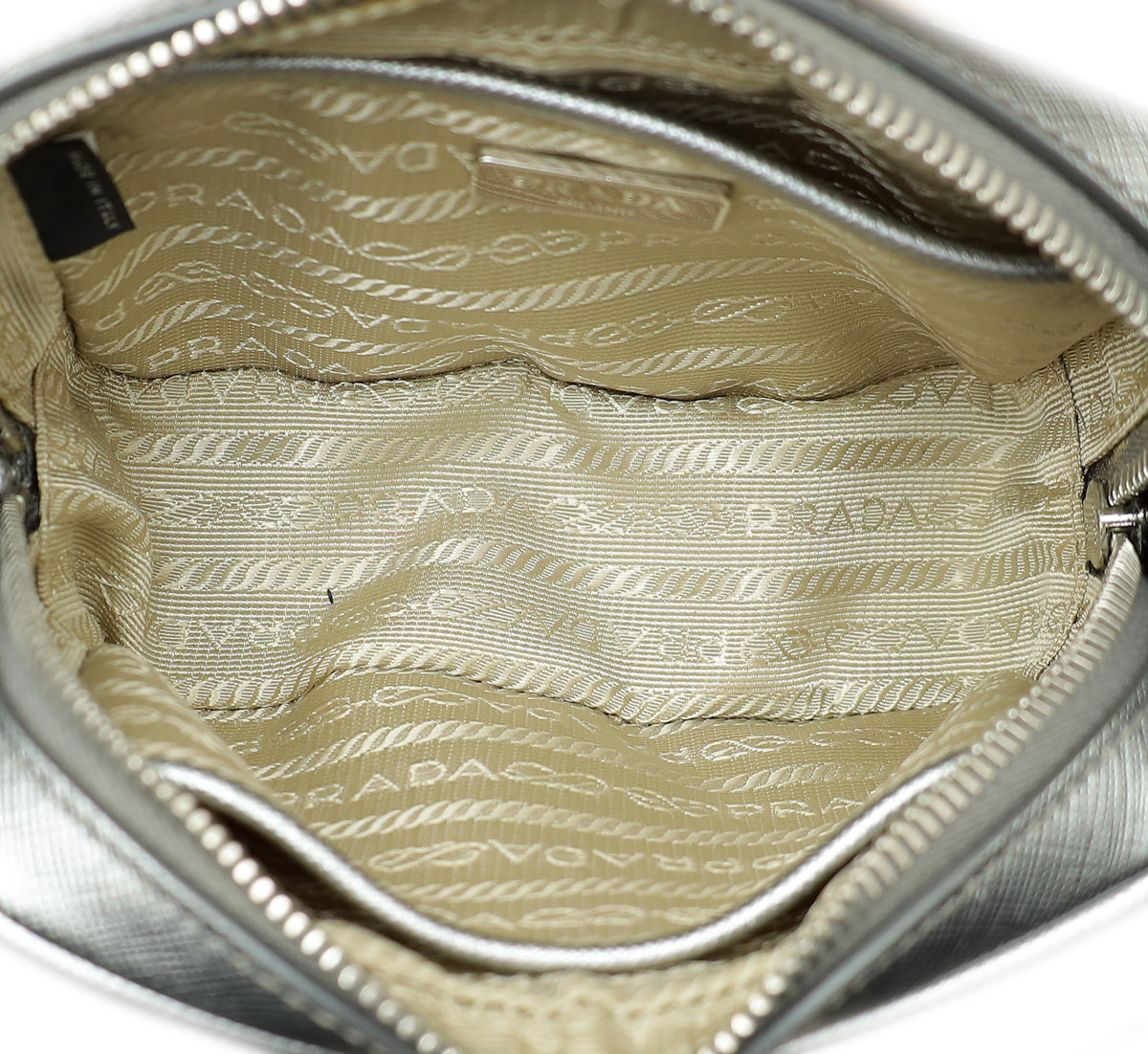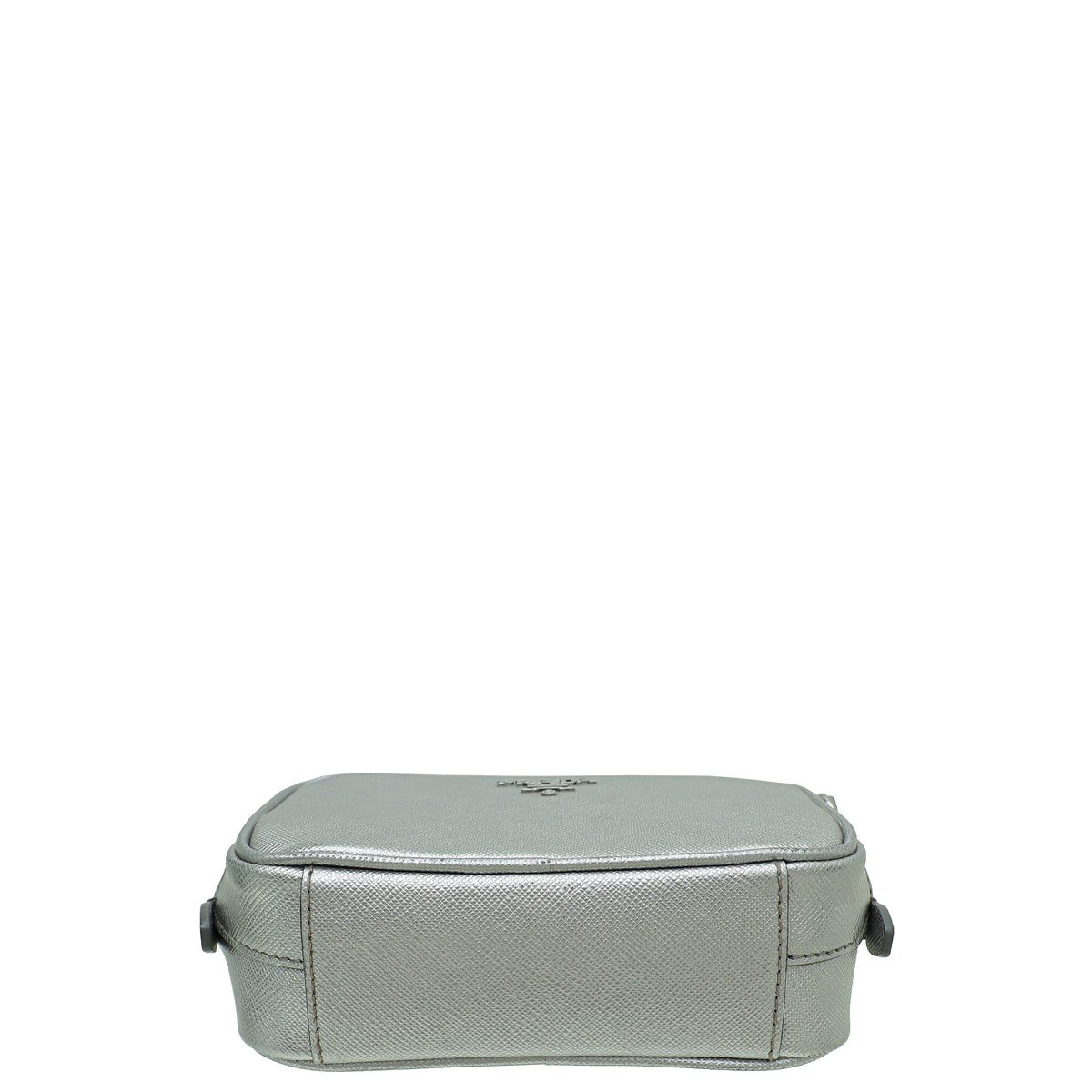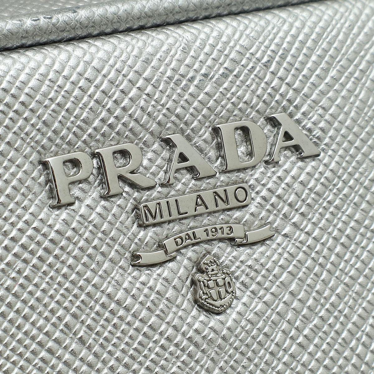 حقيبة برادا صغيرة فضية معدنية للكاميرا