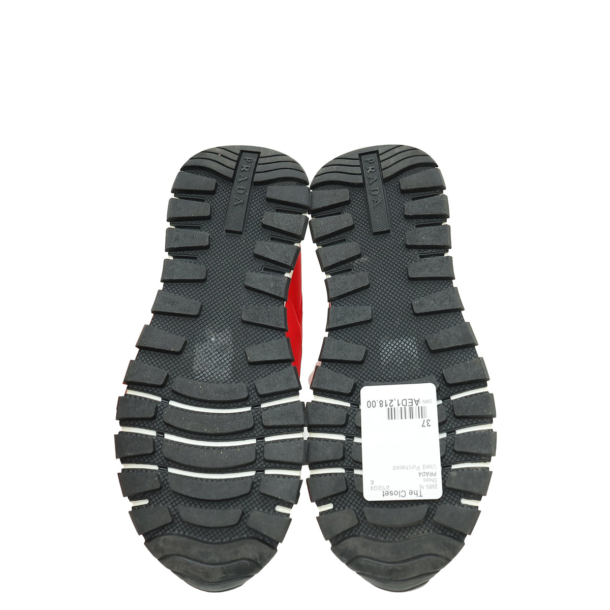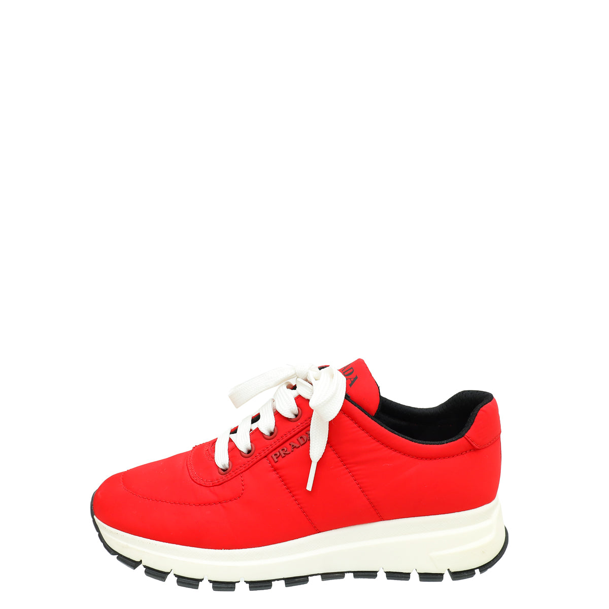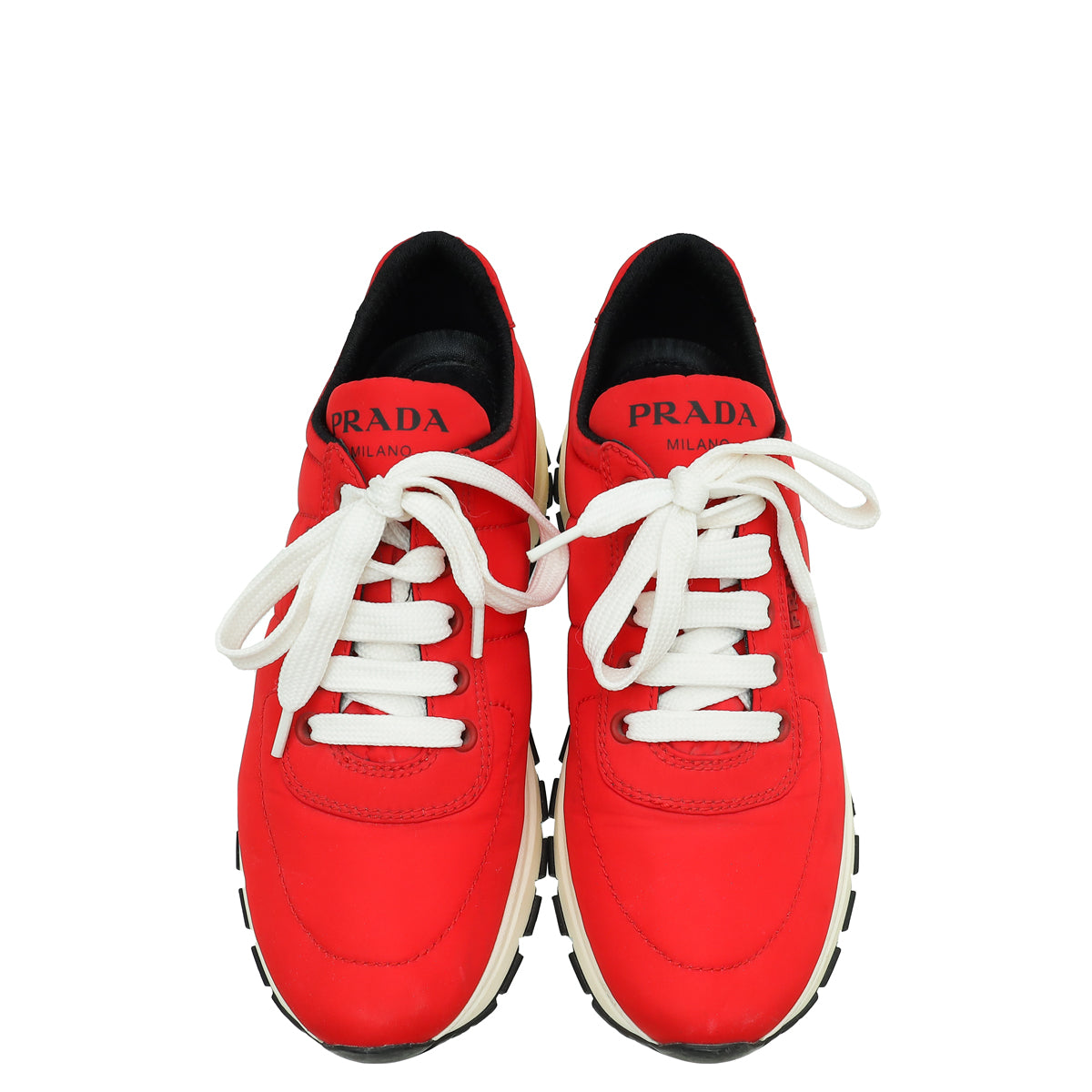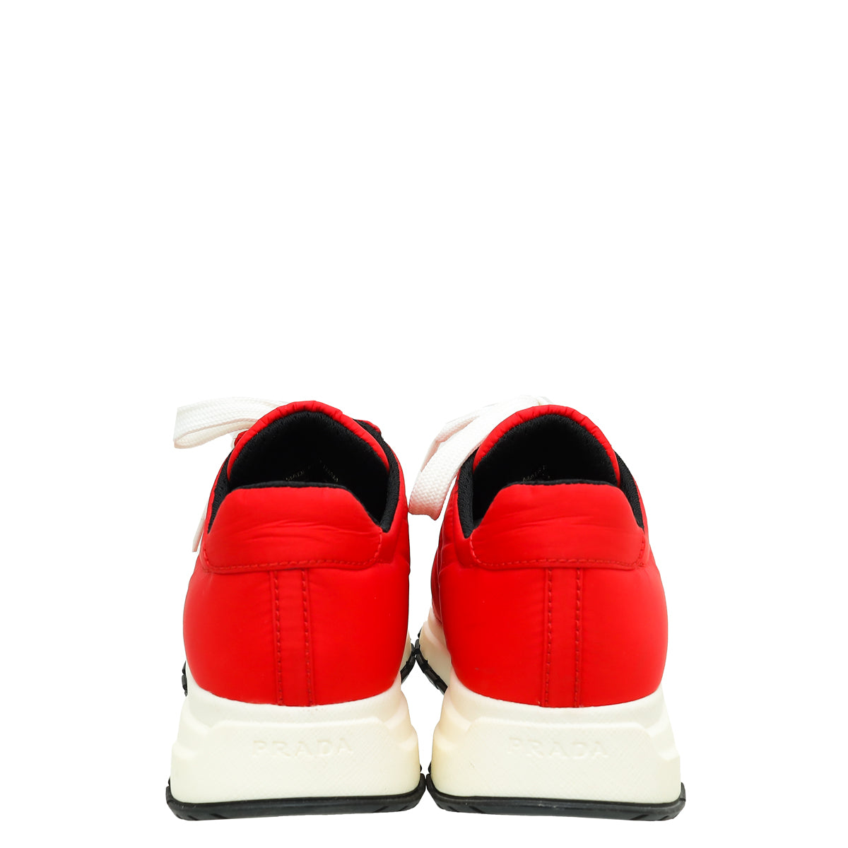 حذاء رياضي برادا نايلون برباط بشعار أحمر 37