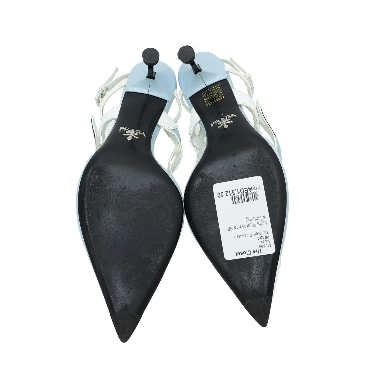 المادة : جلد مصقول باللون الأزرق الفاتح/الأبيض