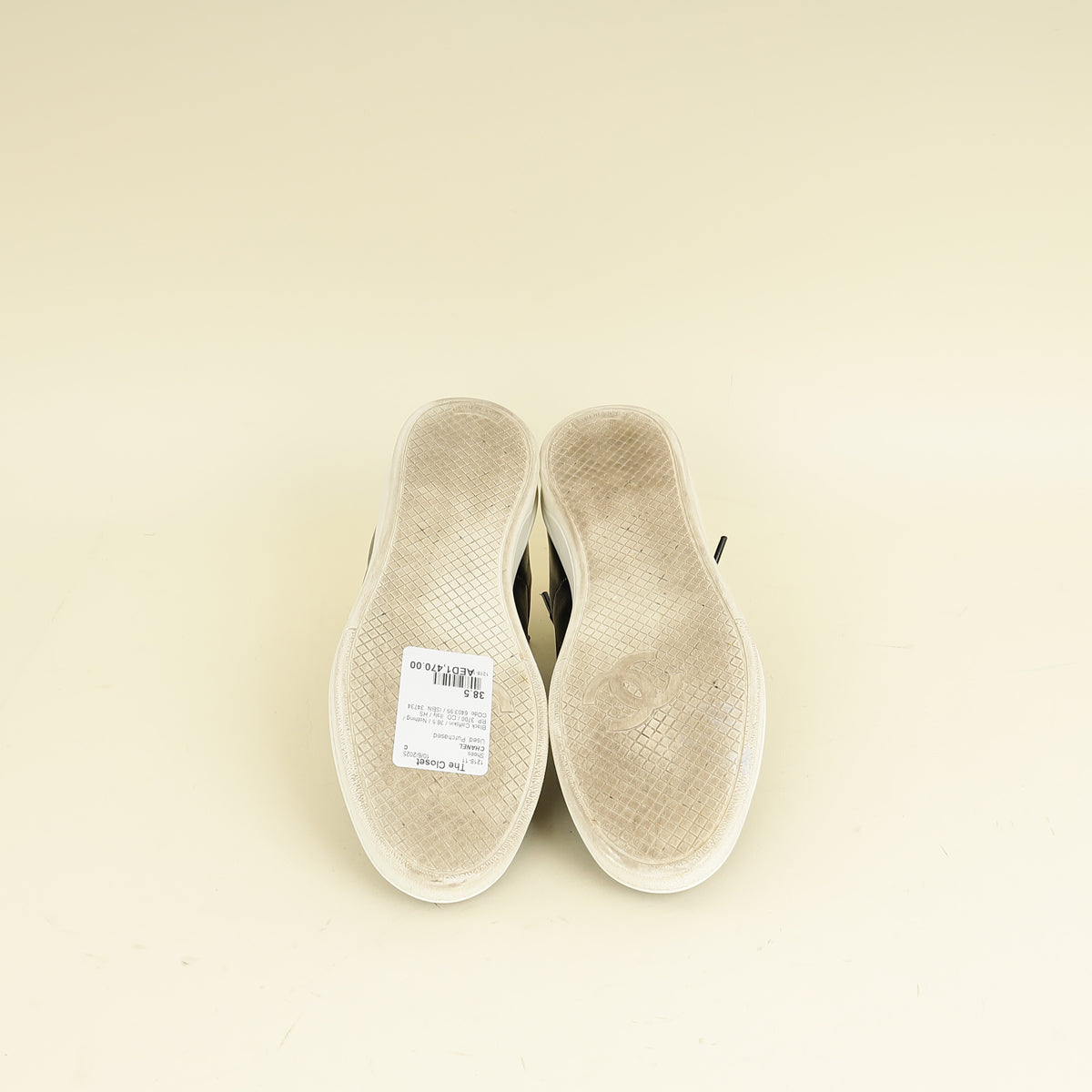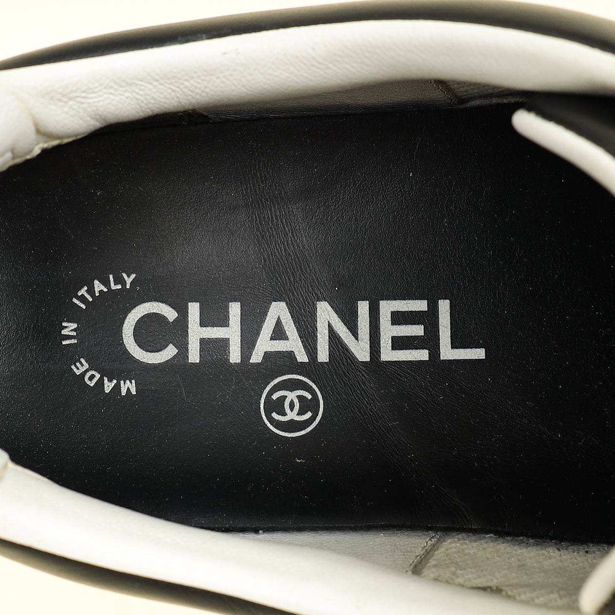 Chanel Black Logo Lace Up CC Low Top Sneakers 38.5