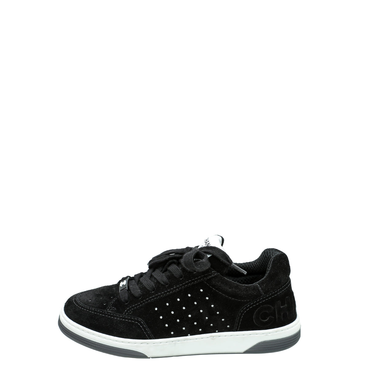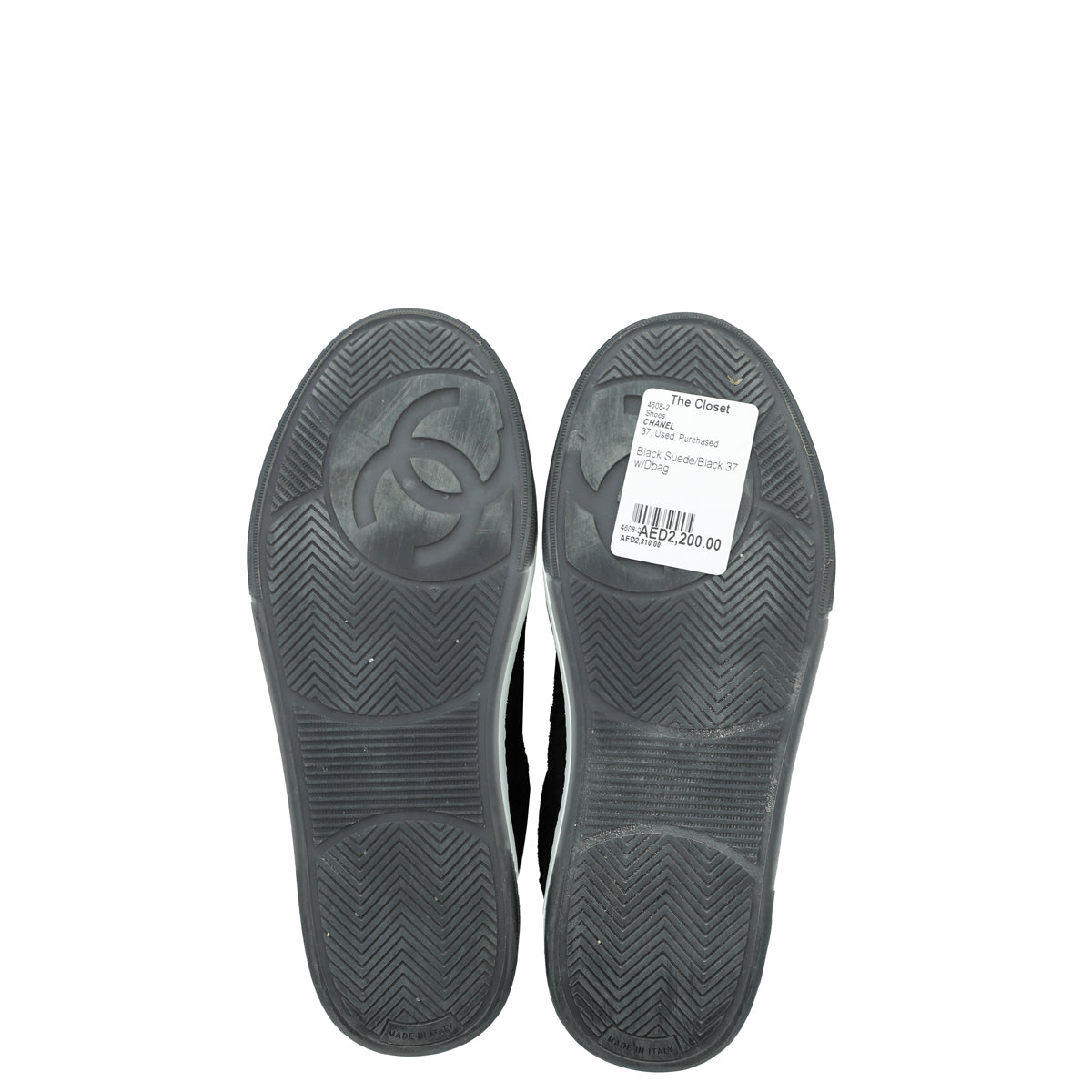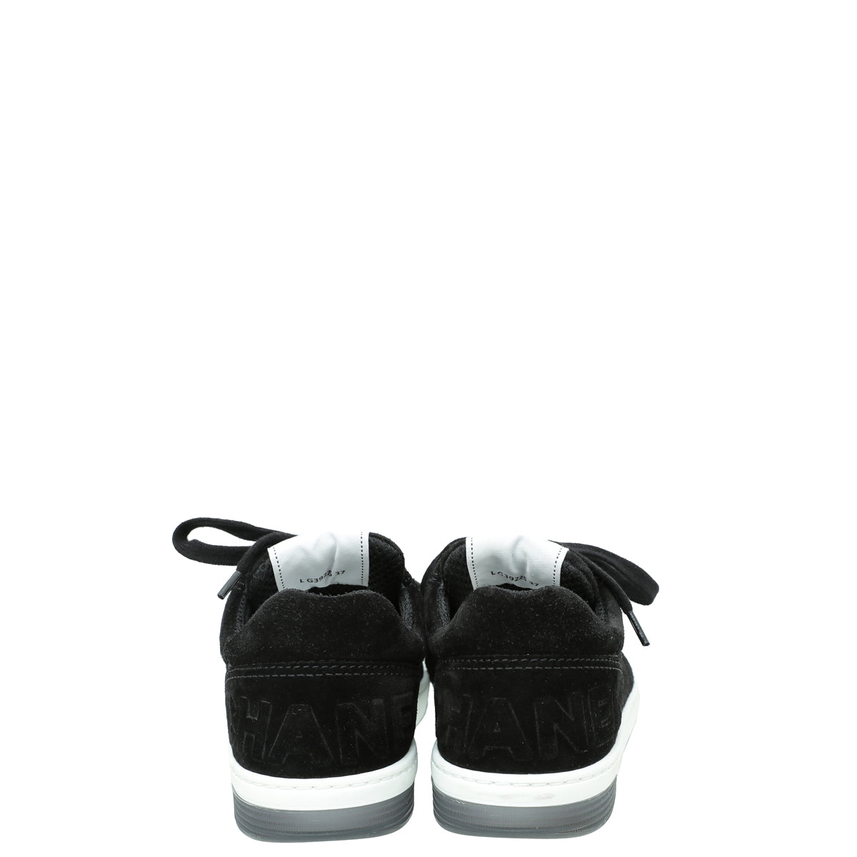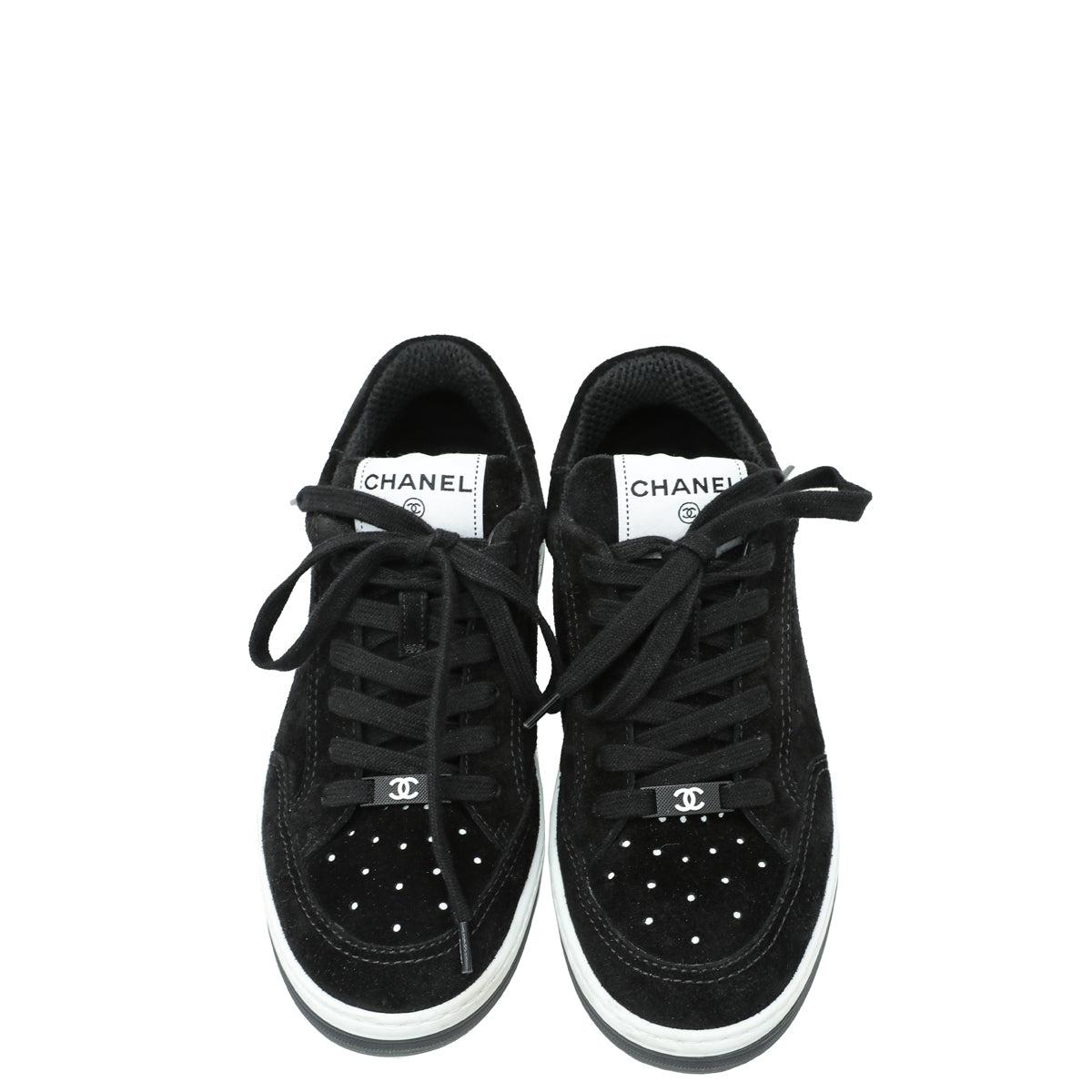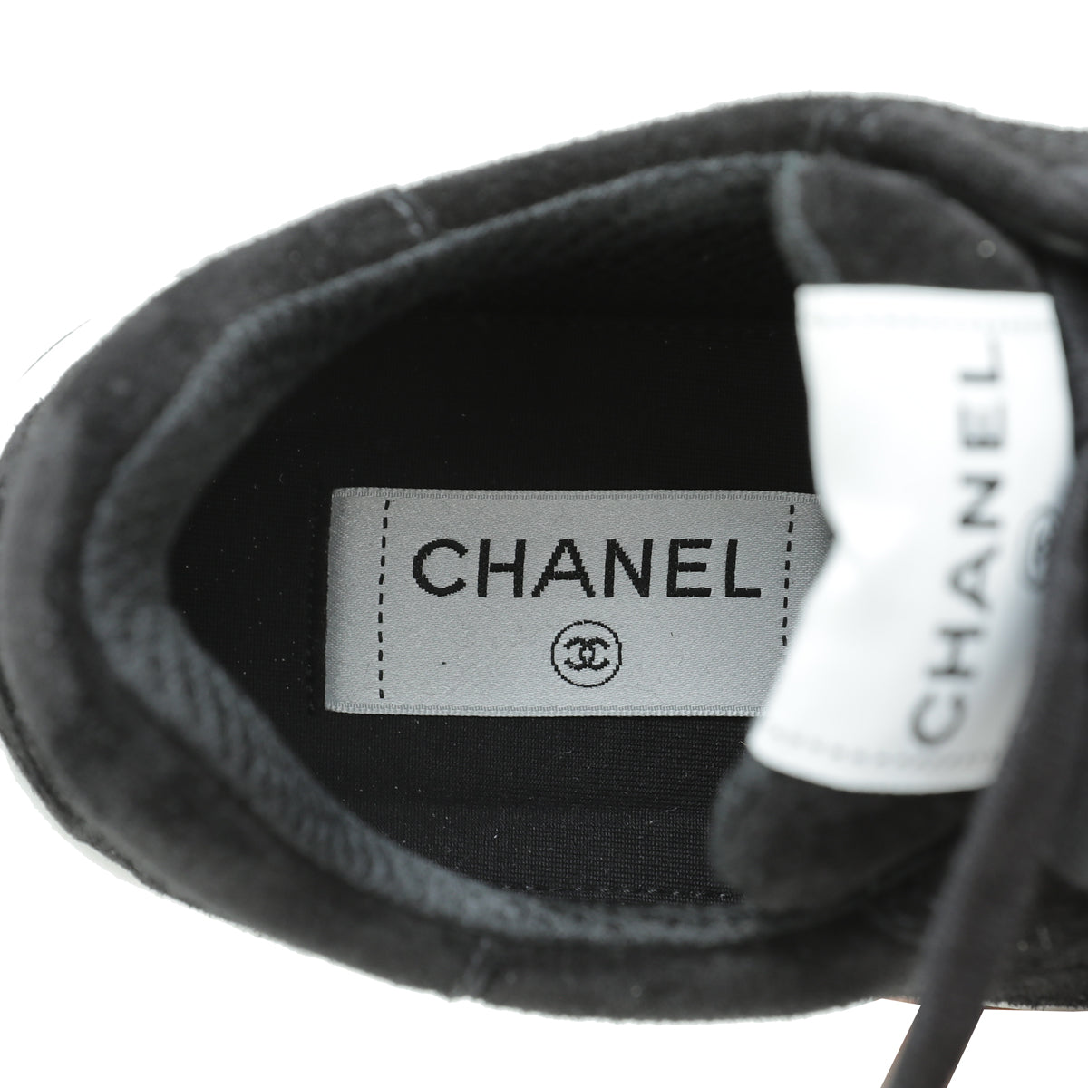 شانيل من جلد الغزال الأسود مثقب CC Lace Up Sneakers 37