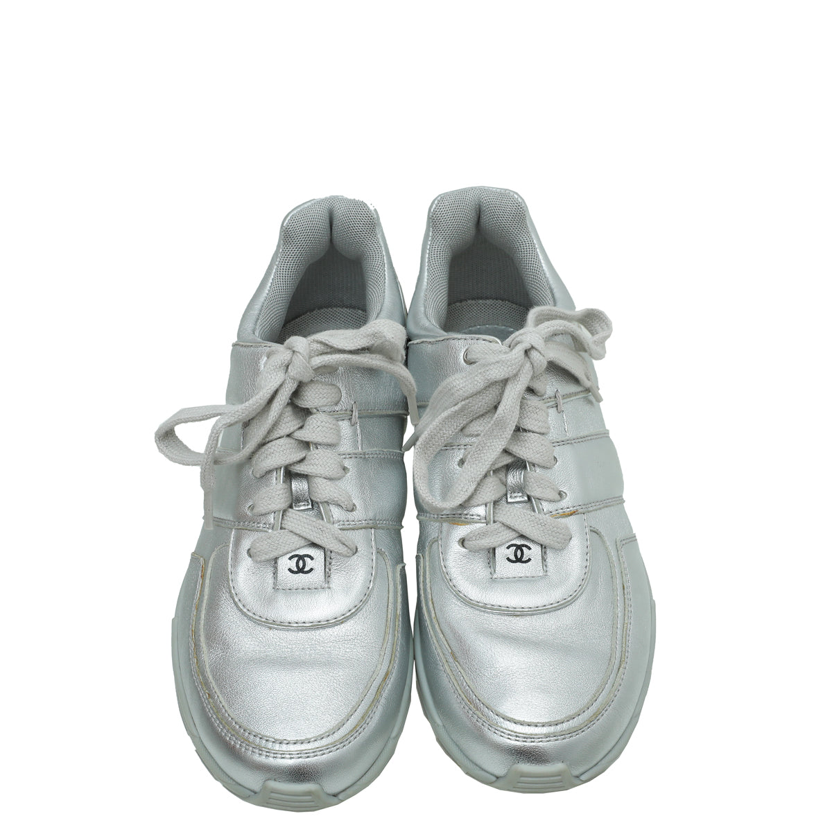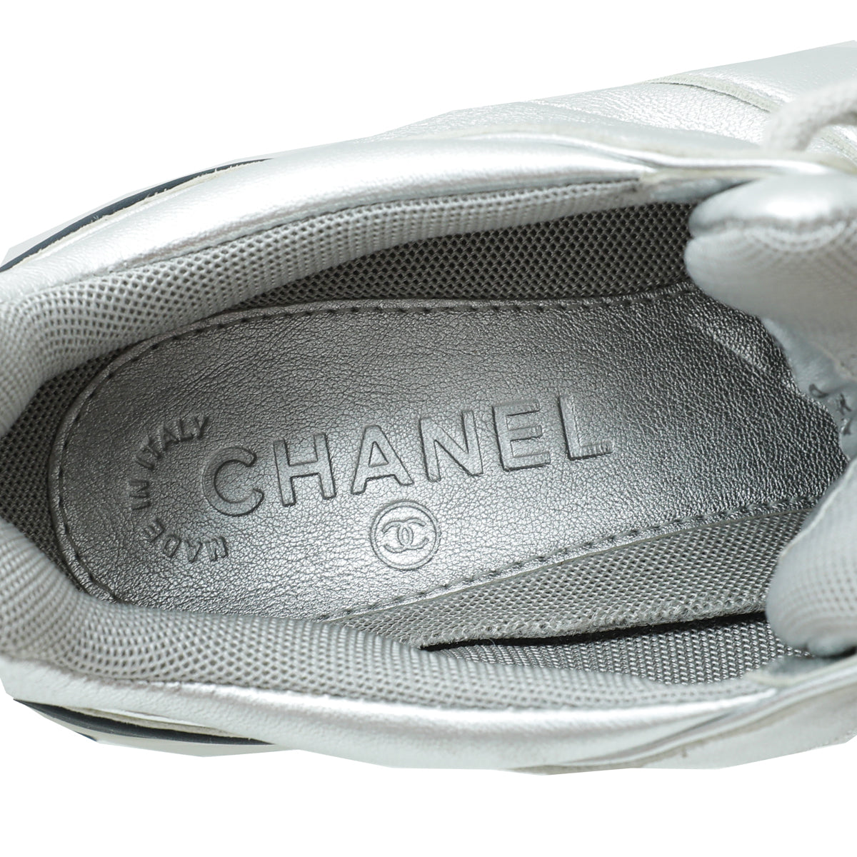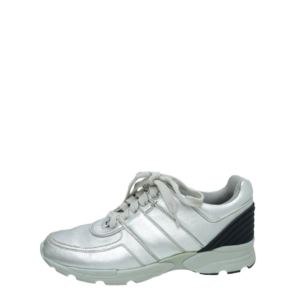 Chanel Metallic Silver CC Metallic Trainer Sneaker 38-Chanel-THE CLOSET