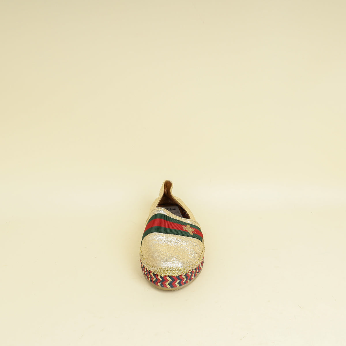 Gucci Metallic Gold Galassia Web Bee Embroidered Espadrilles 39