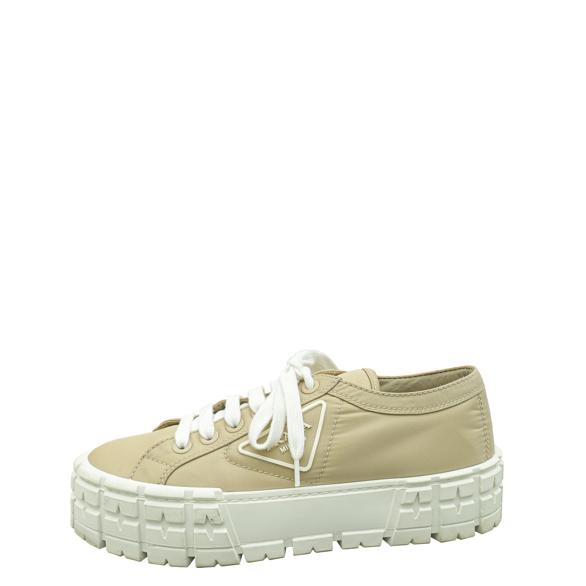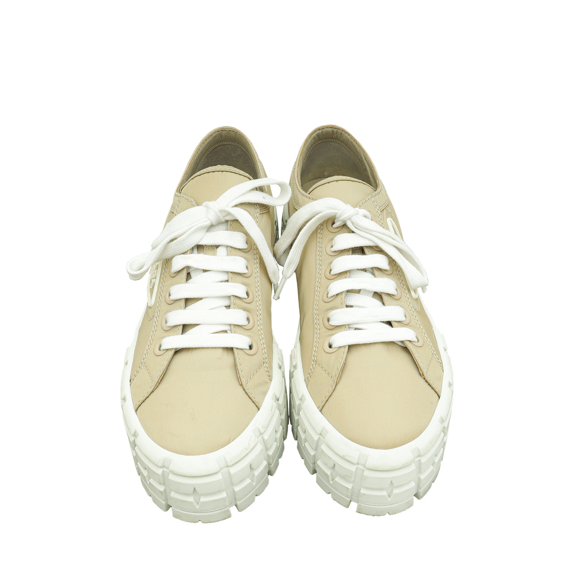 Prada Dessert Beige Re-Nylon Double Wheel Gabardine Sneakers 40