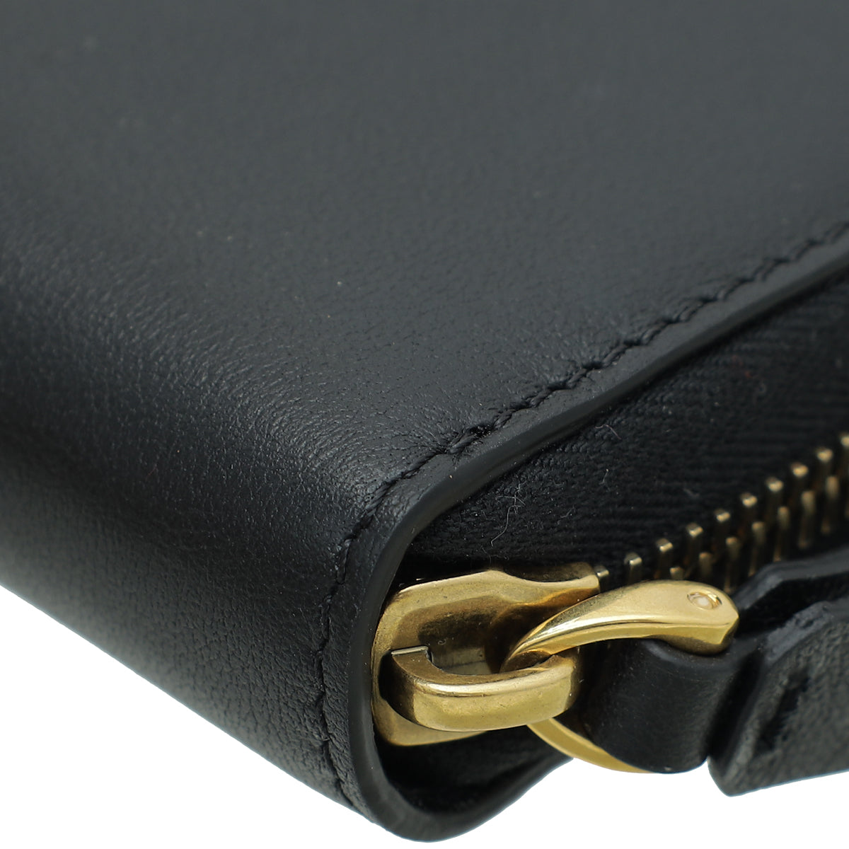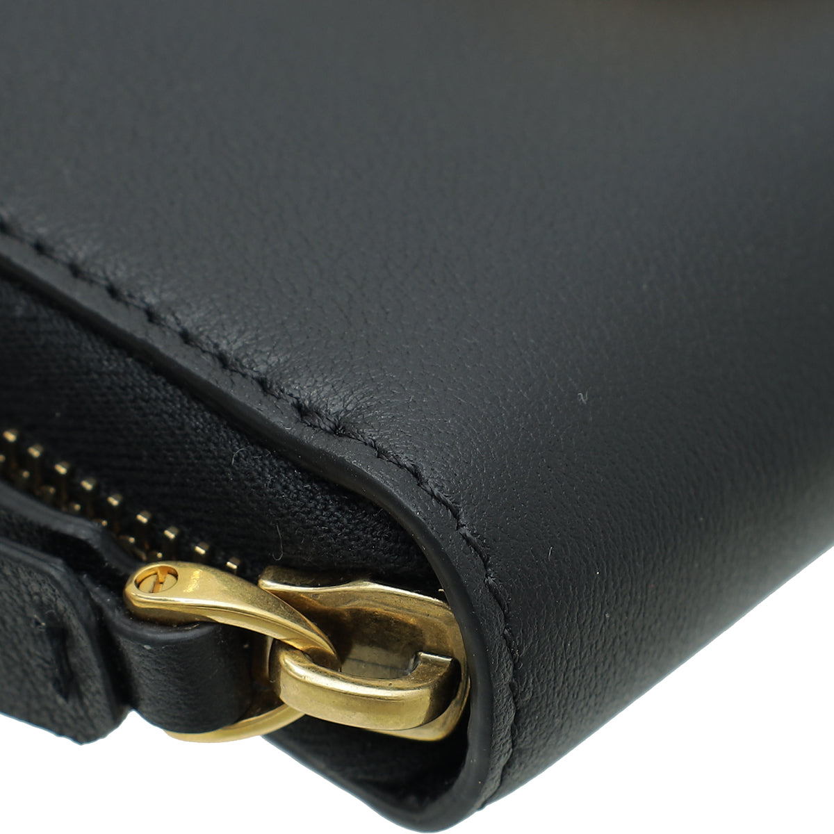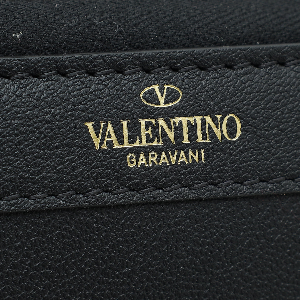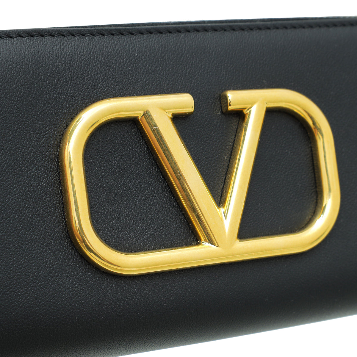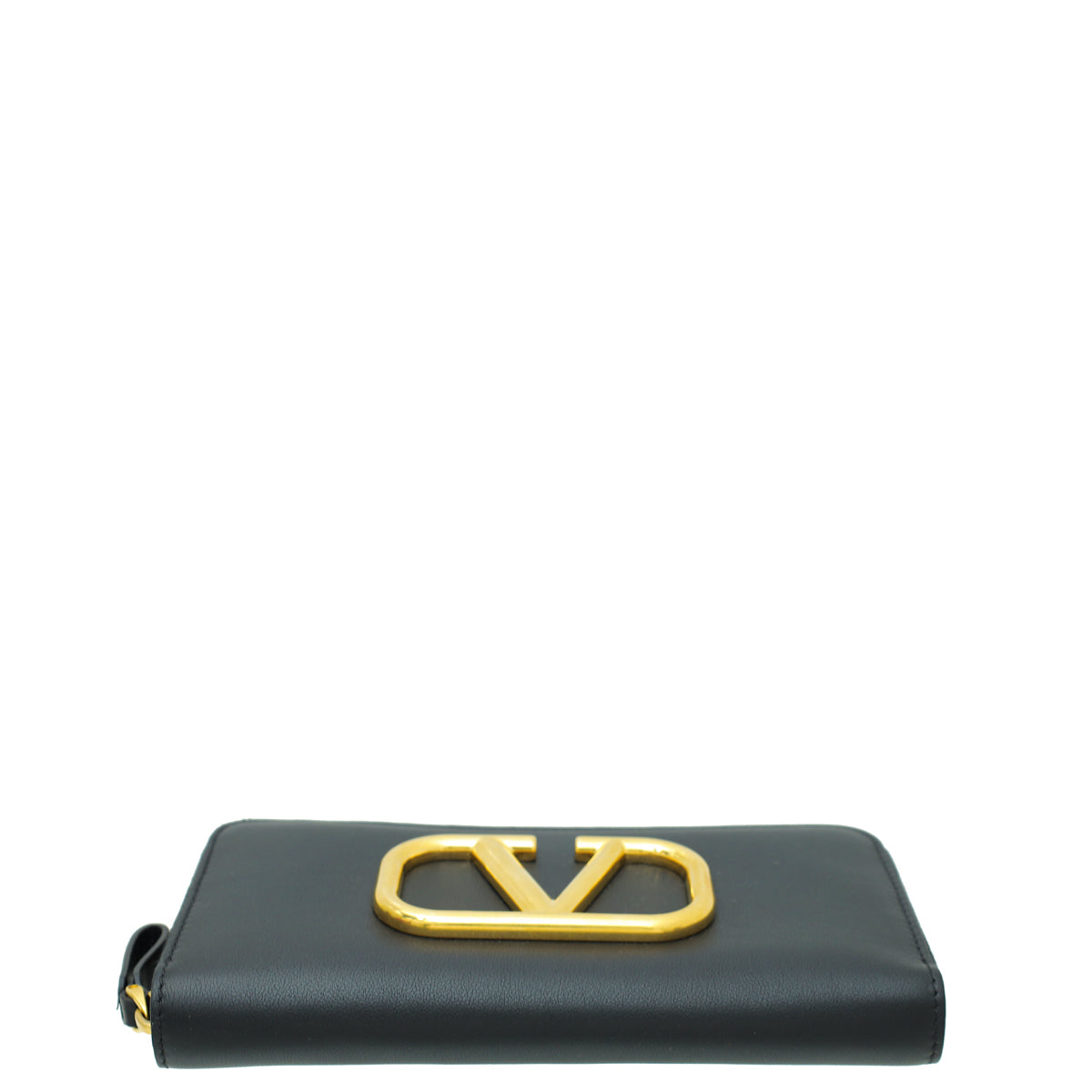 محفظة فالنتينو بسحاب حول شعار V باللون الأسود