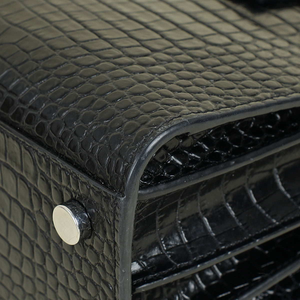 YSL Black Sac De Jour Nano Croco Embossed Bag