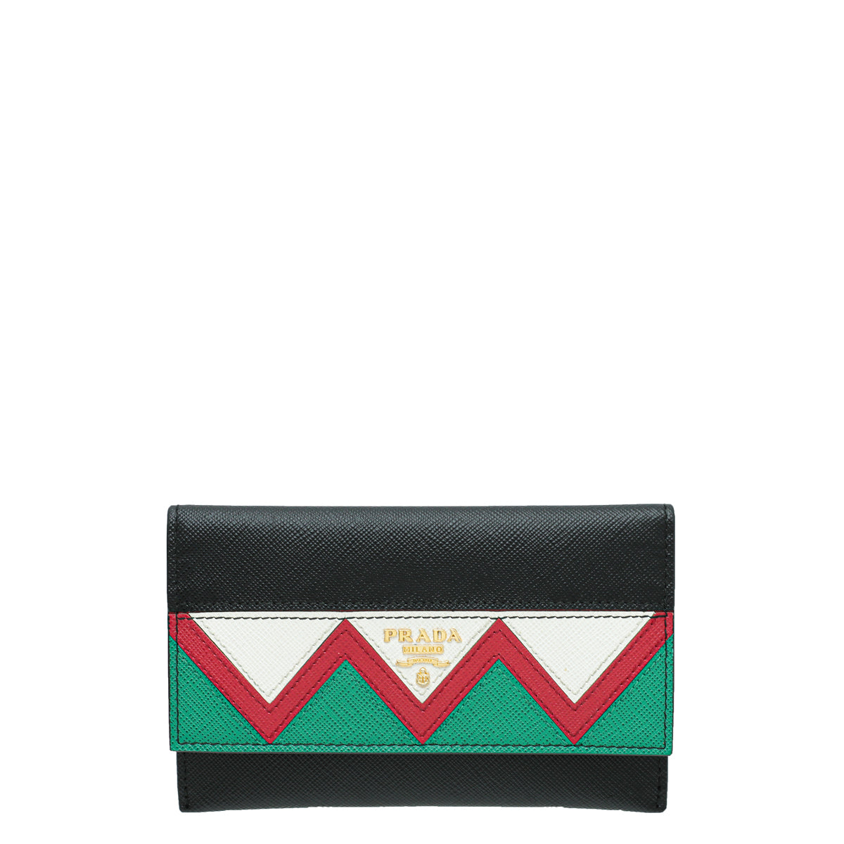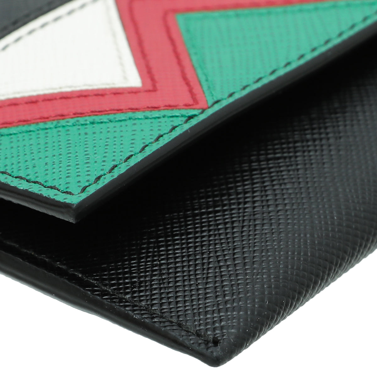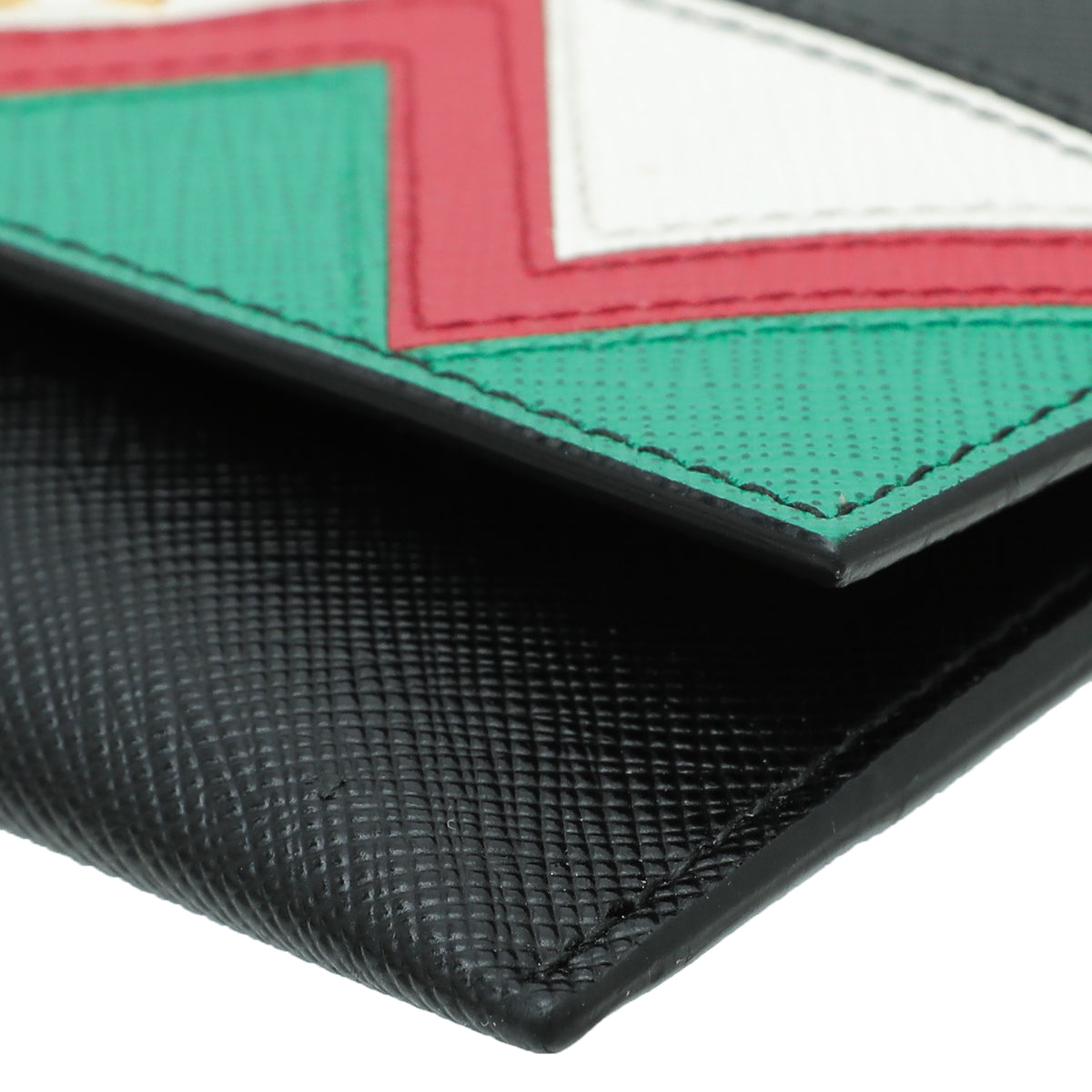 Prada Black Multicolor Lux Slim Flap Wallet-Prada-THE CLOSET