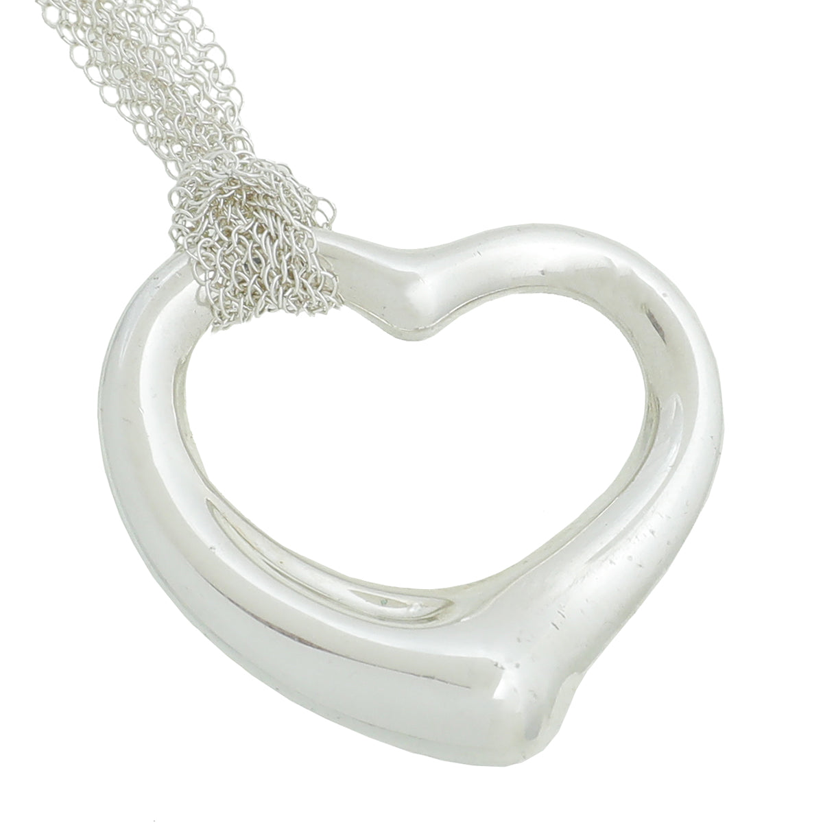 Tiffany & Co Sterling Silver Elsa Peretti قلادة شبكة القلب المفتوحة
