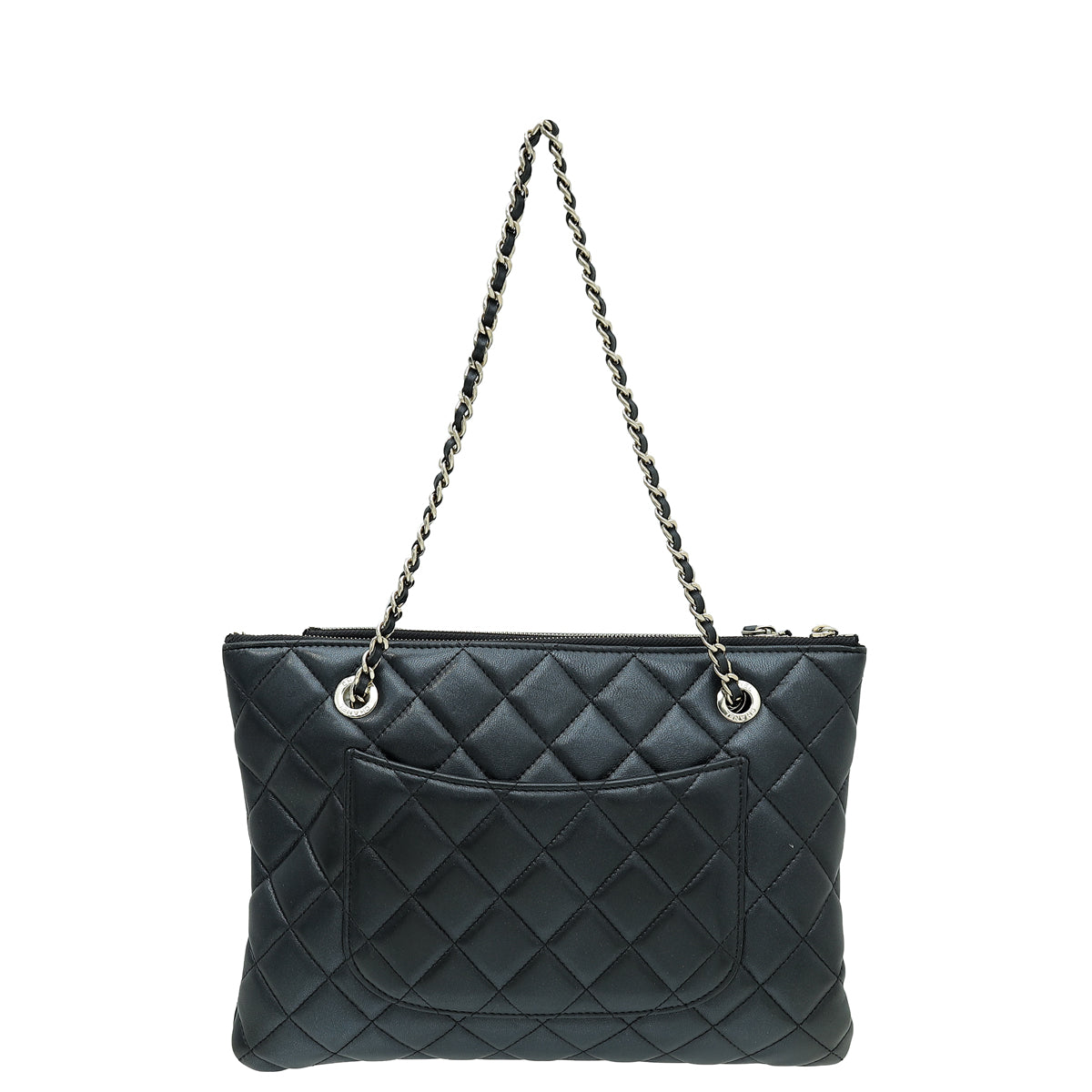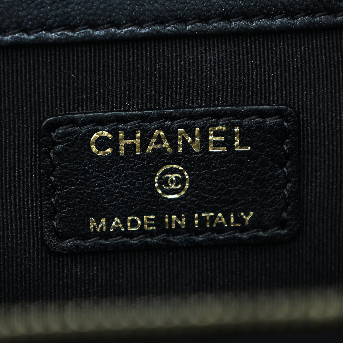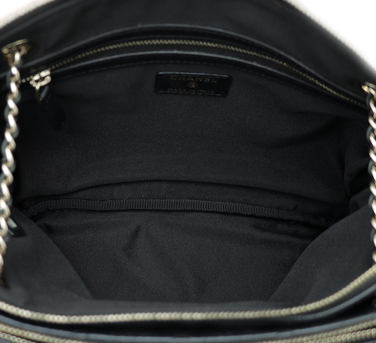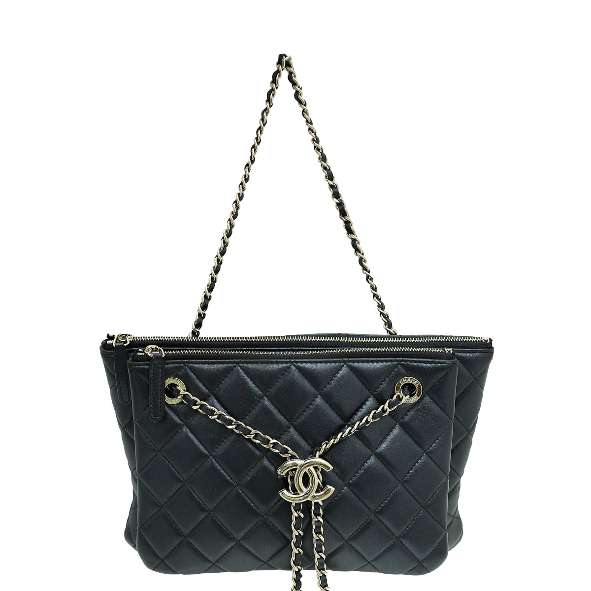 حقيبة شانيل CC معدنية سوداء مزدوجة بسلسلة قابلة للتعديل متوسطة الحجم