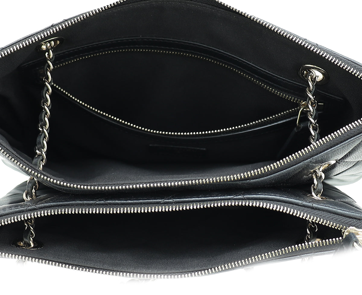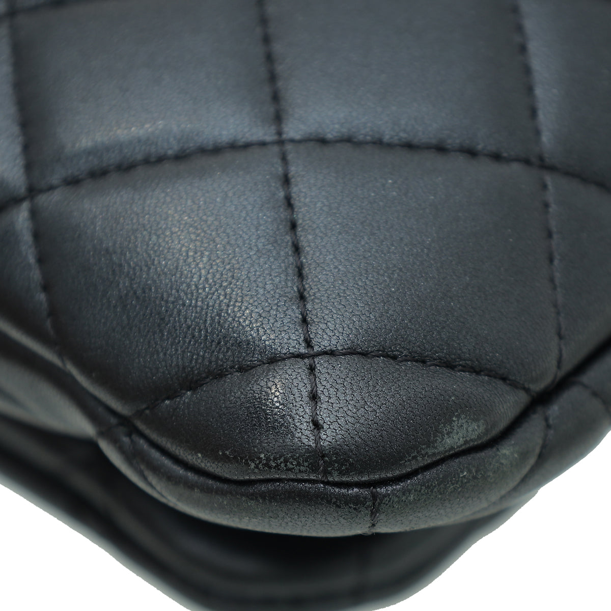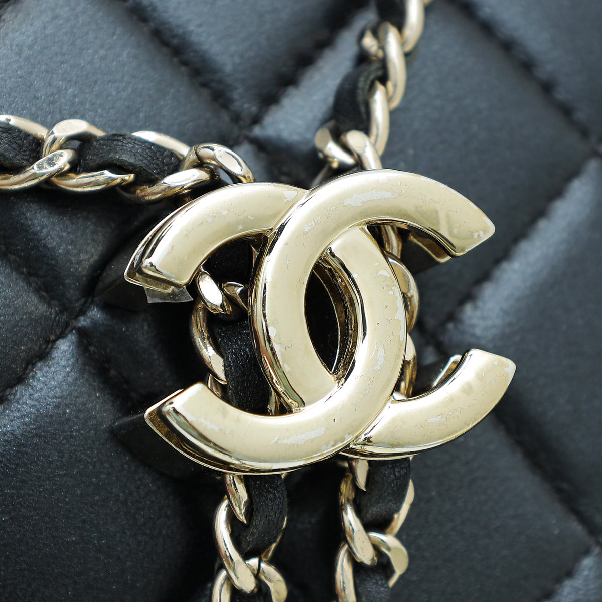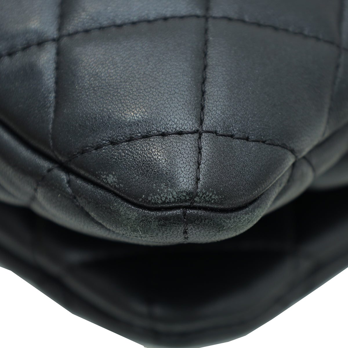 حقيبة شانيل CC معدنية سوداء مزدوجة بسلسلة قابلة للتعديل متوسطة الحجم