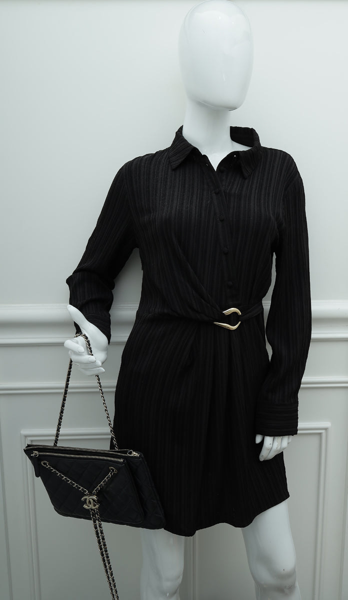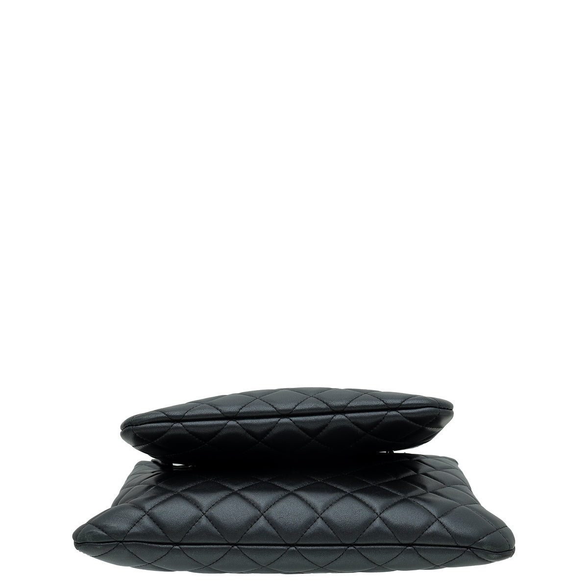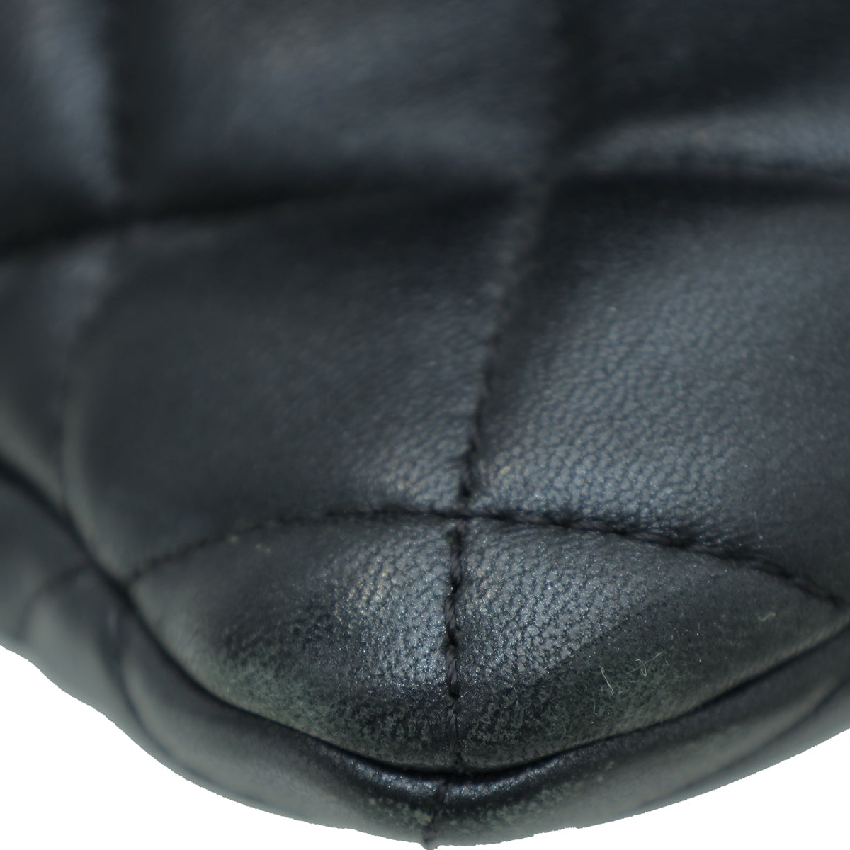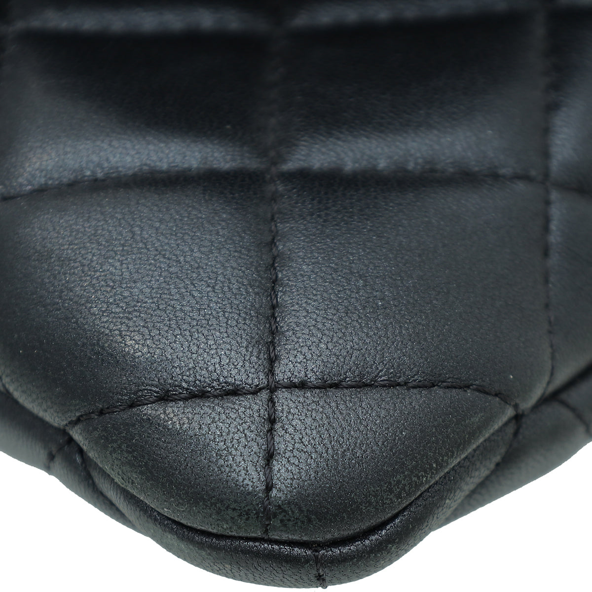 حقيبة شانيل CC معدنية سوداء مزدوجة بسلسلة قابلة للتعديل متوسطة الحجم