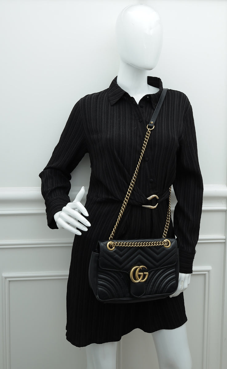 Gucci Black GG Marmont Matelasse حقيبة كتف صغيرة