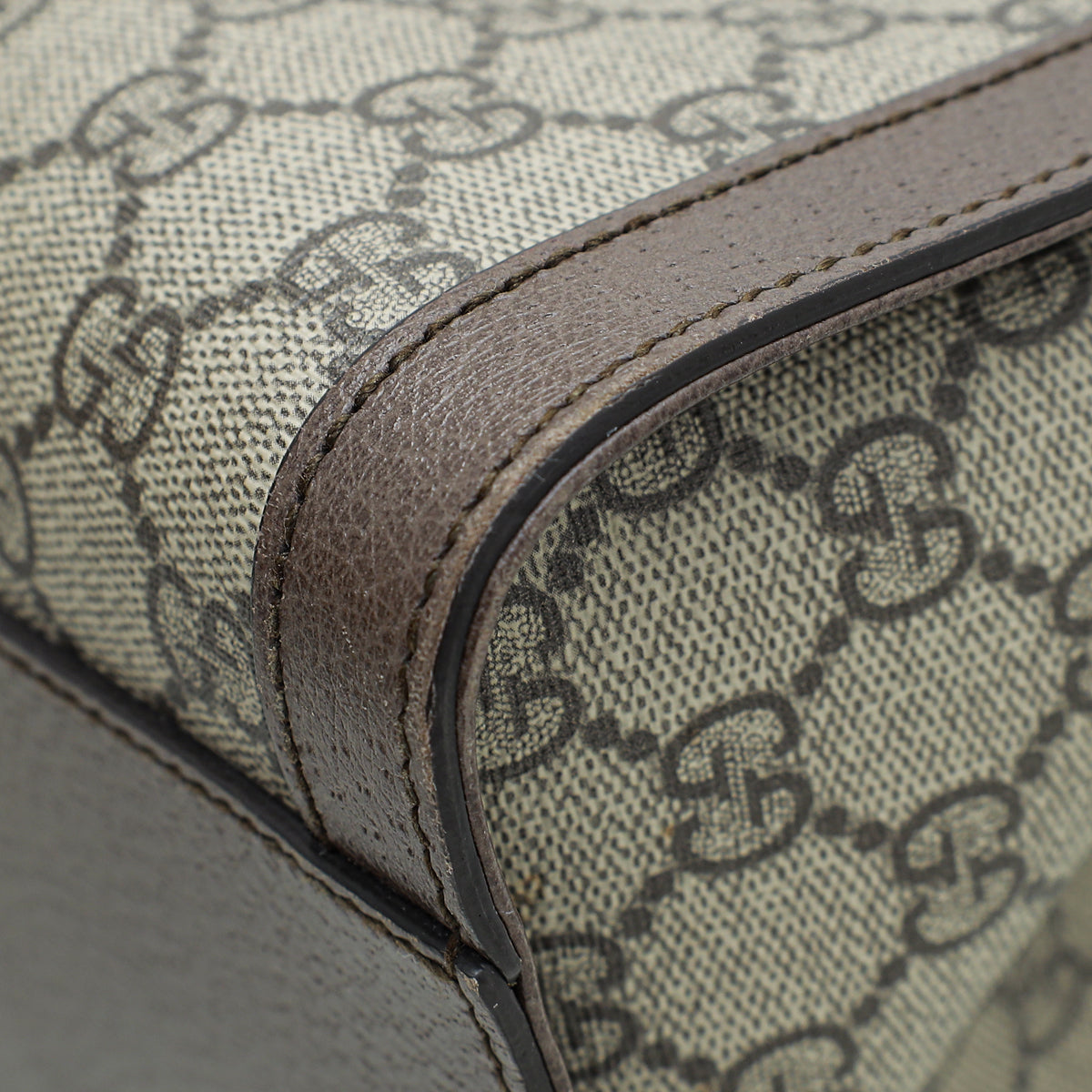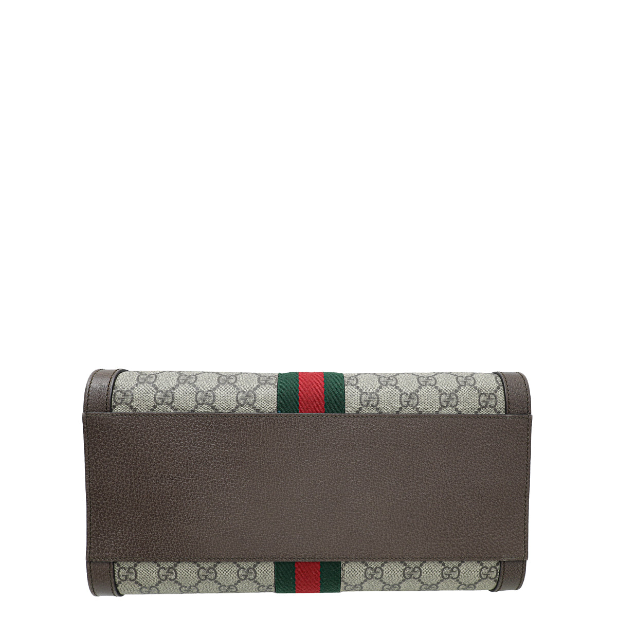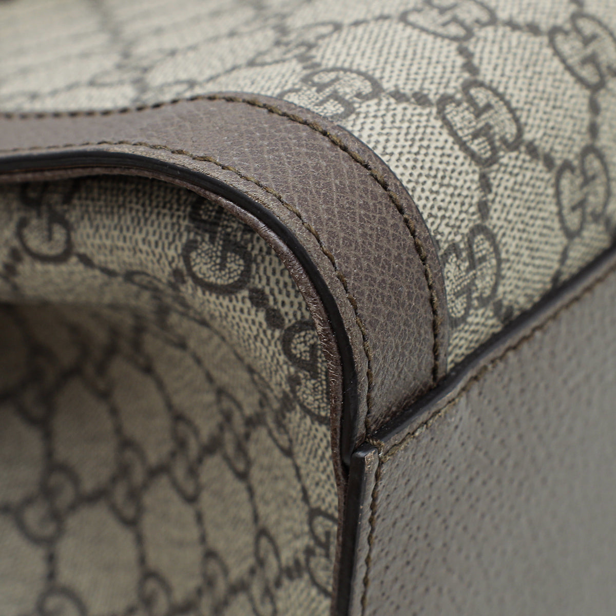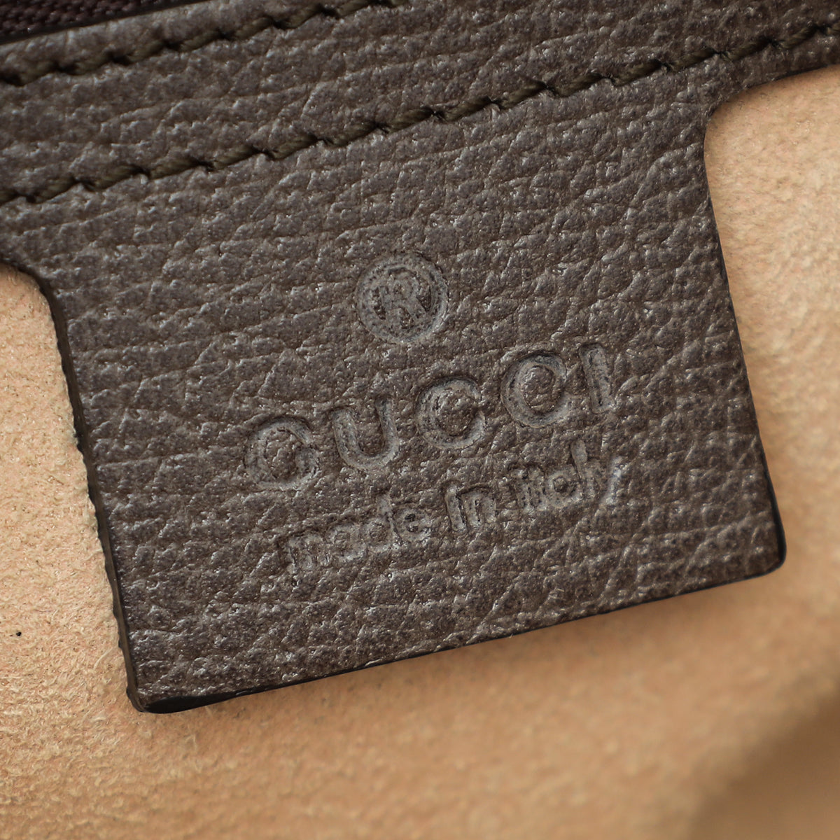 المواد: قماش سوبريم بنقش GG باللون الأبنوسي وزخرفة من الجلد باللون البني وشريط ويب باللون الأخضر/الأحمر