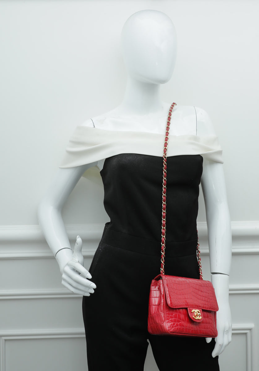 Chanel Red Crocodile Vintage CC Classic Mini Square Bag-Chanel-THE CLOSET