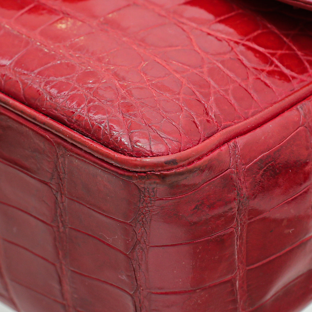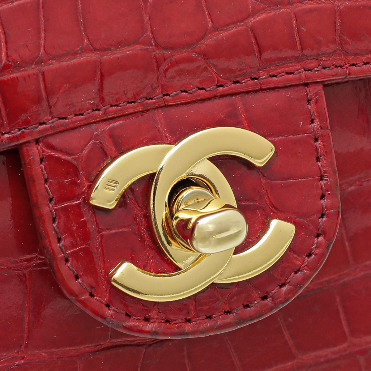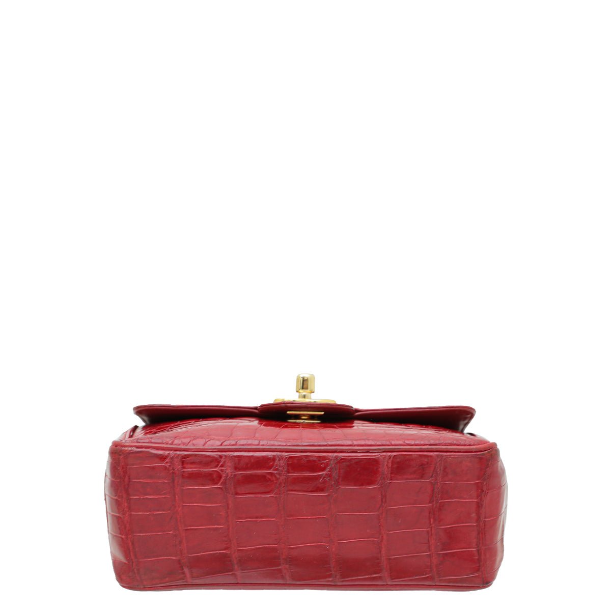 Chanel Red Crocodile Vintage CC Classic Mini Bag