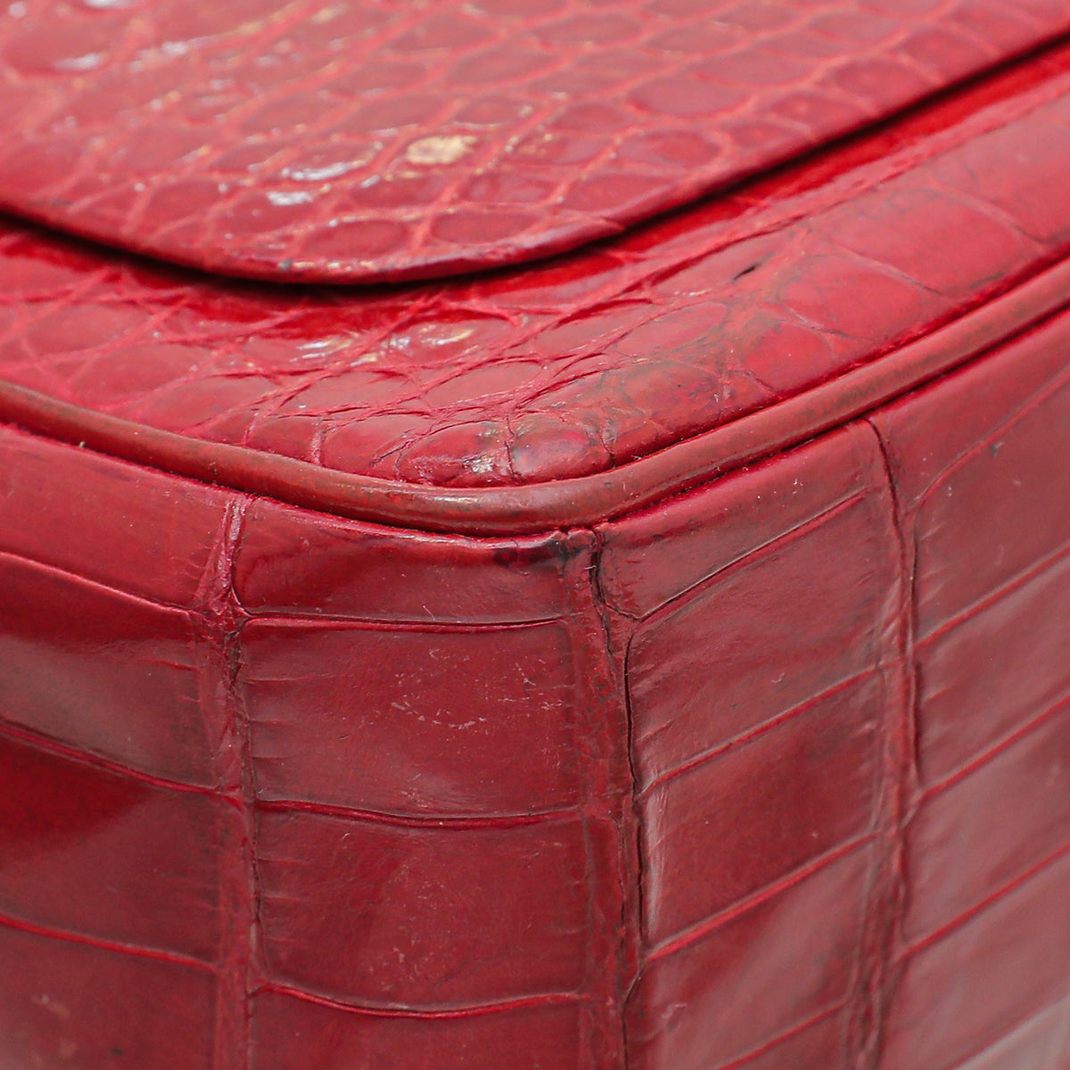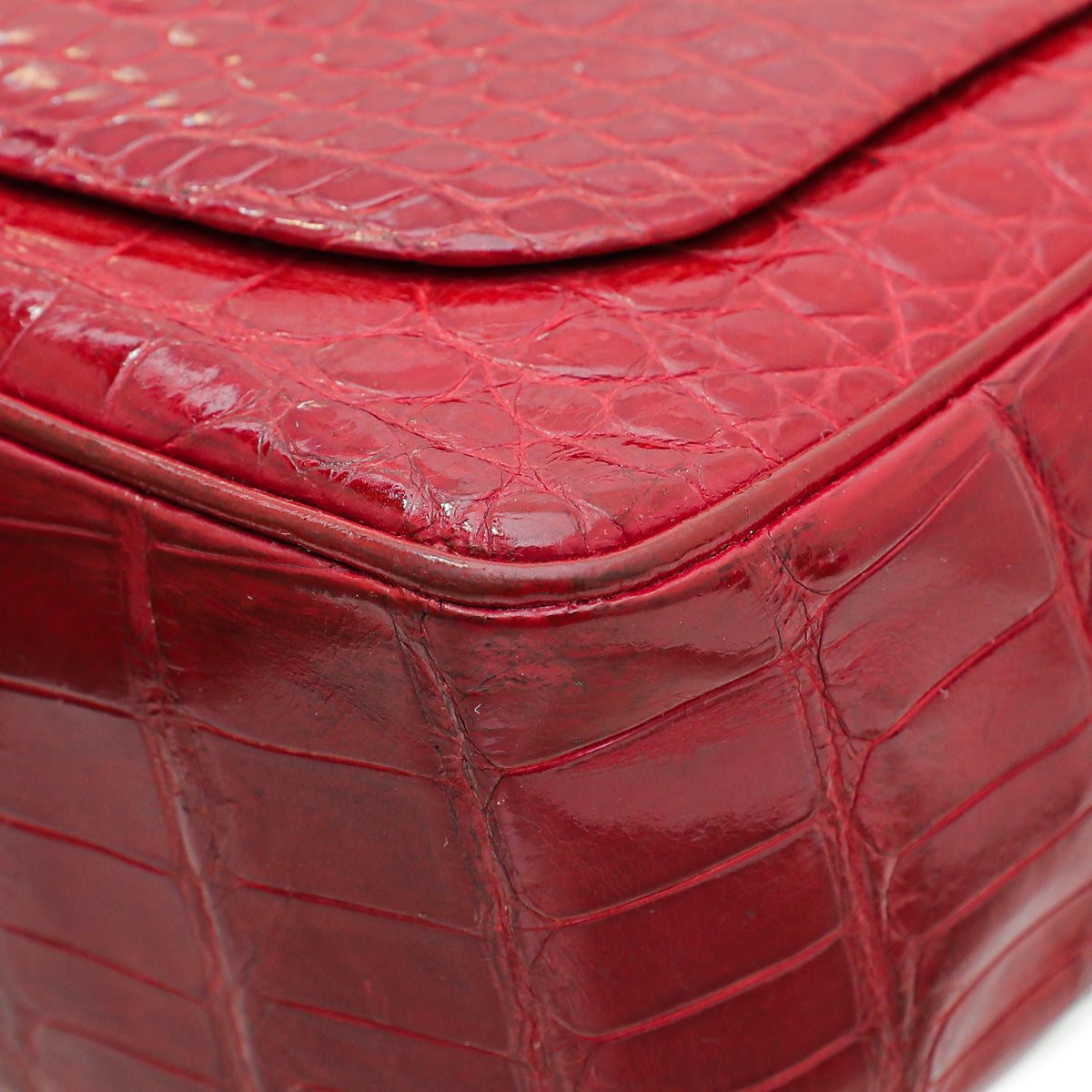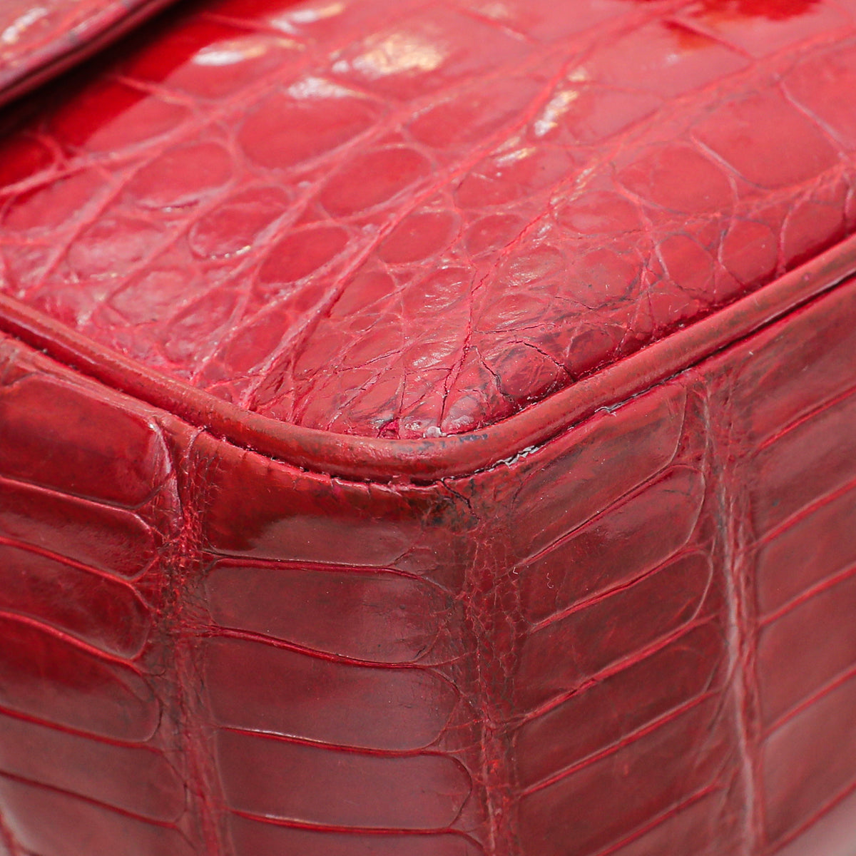 Chanel Red Crocodile Vintage CC Classic Mini Bag