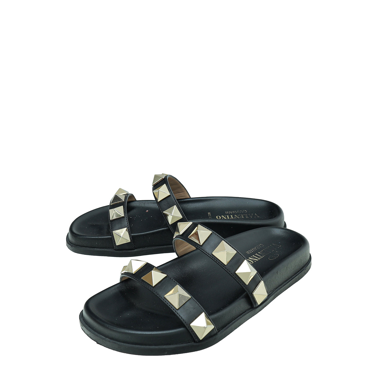 Valentino Black Roman Stud Mule 35-Valentino-THE CLOSET