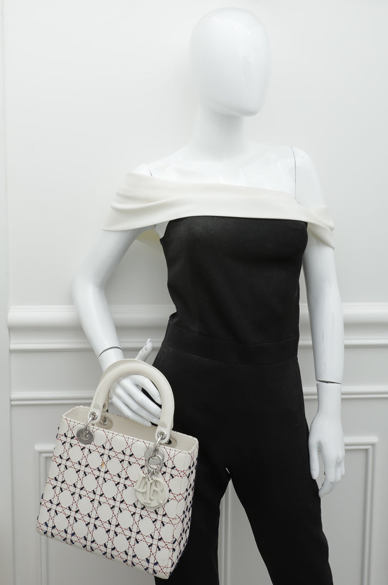 كريستيان ديور تريكولور الكانيج خياطة Ltd.ed. حقيبة ليدي ديور المتوسطة