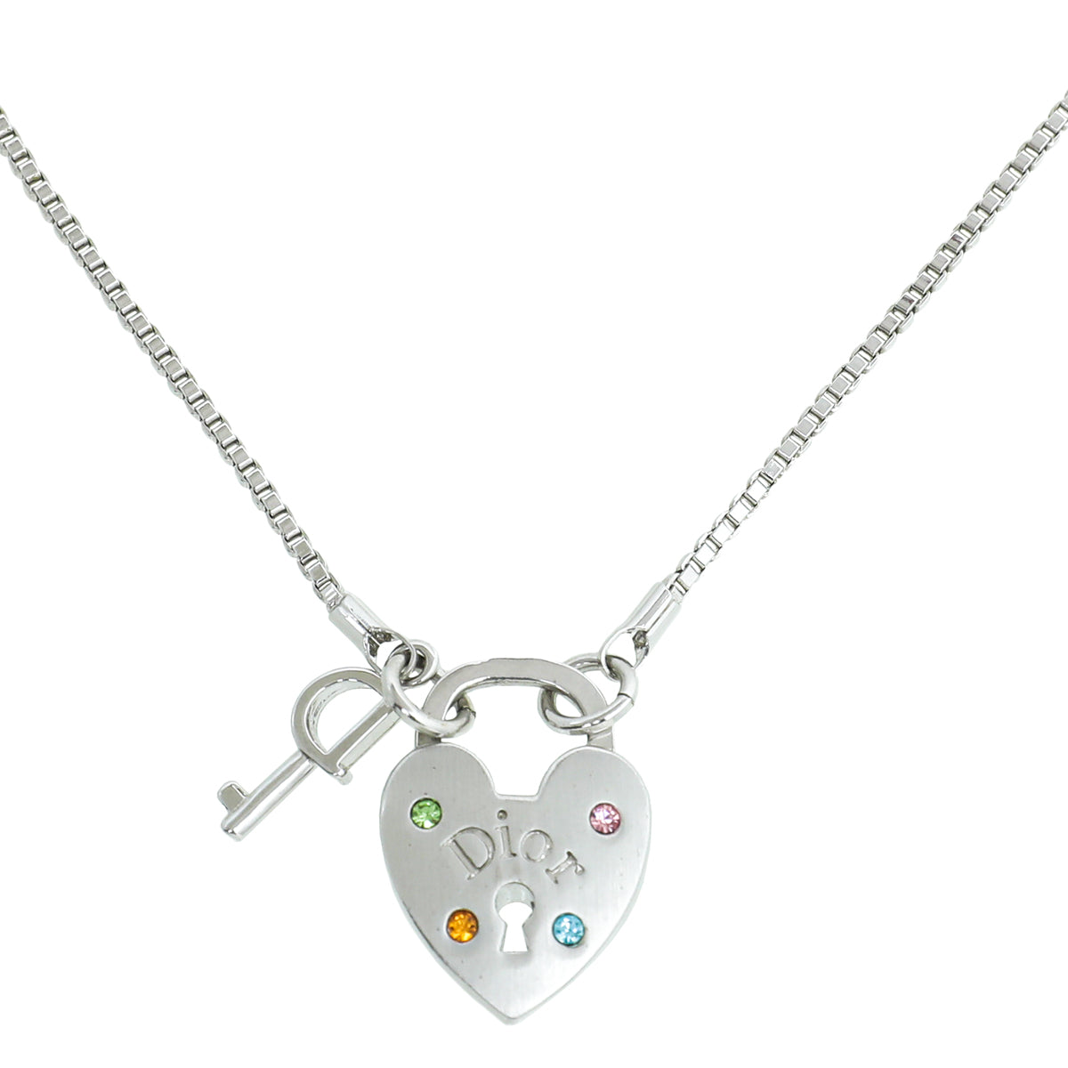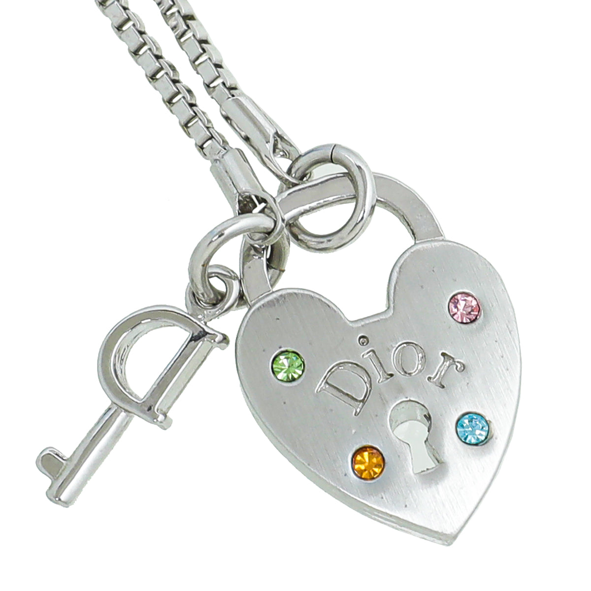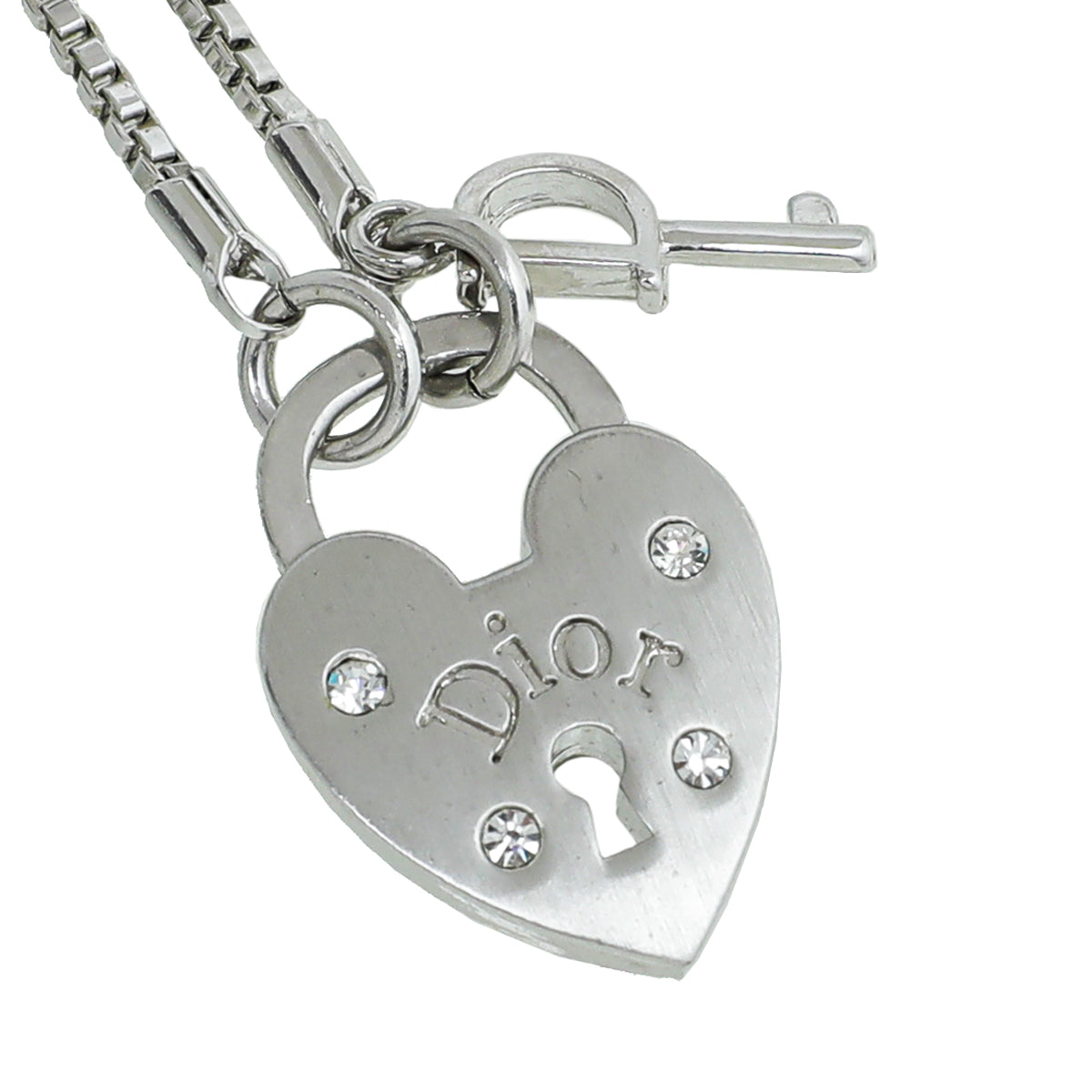 قفل القلب الفضي كريستيان ديور وقلادة بلورية رئيسية