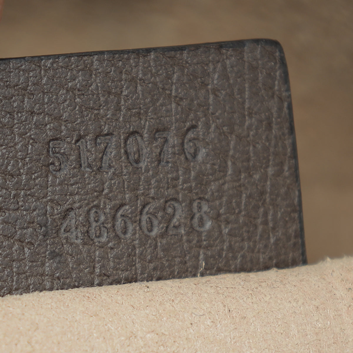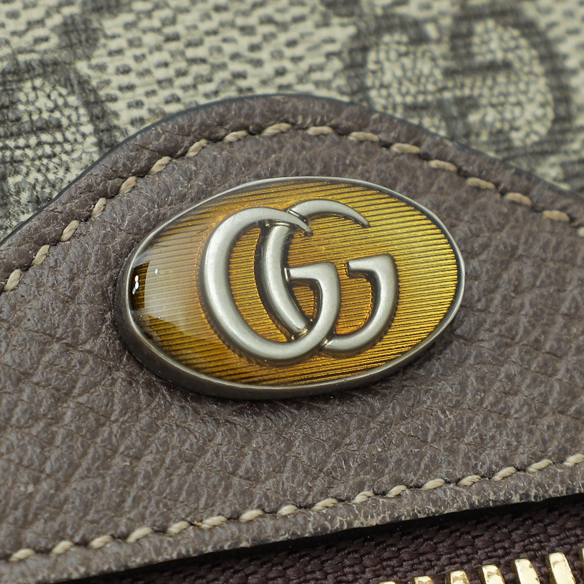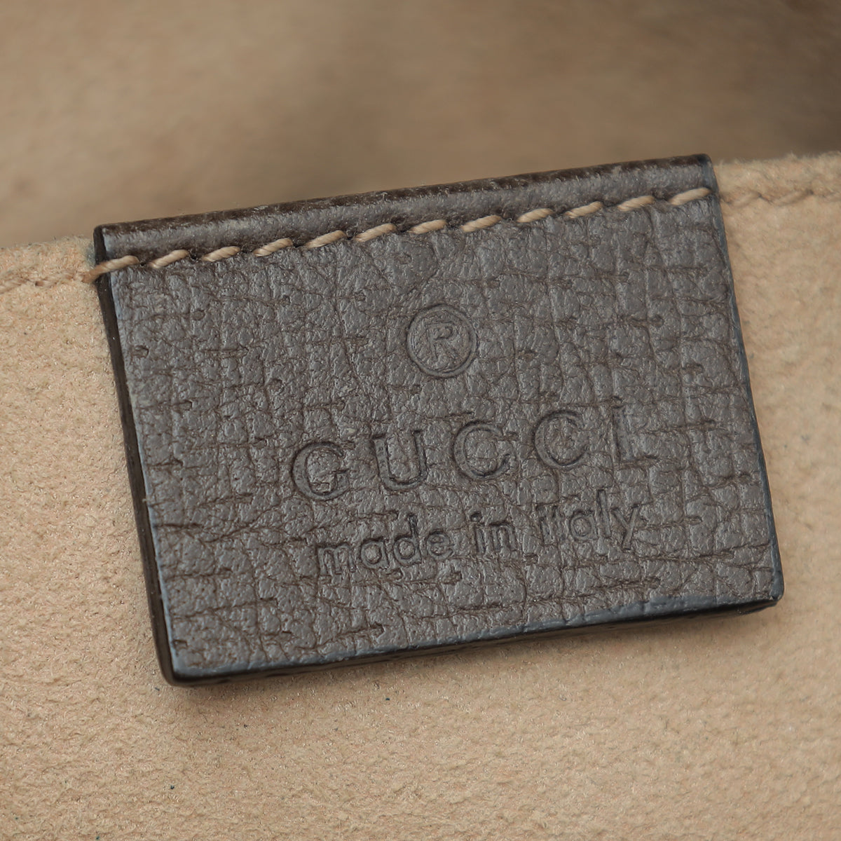 المواد: قماش سوبريم بنقش GG باللون الأبنوسي مع زخرفة من الجلد باللون البني وشريط ويب باللون الأخضر/الأحمر