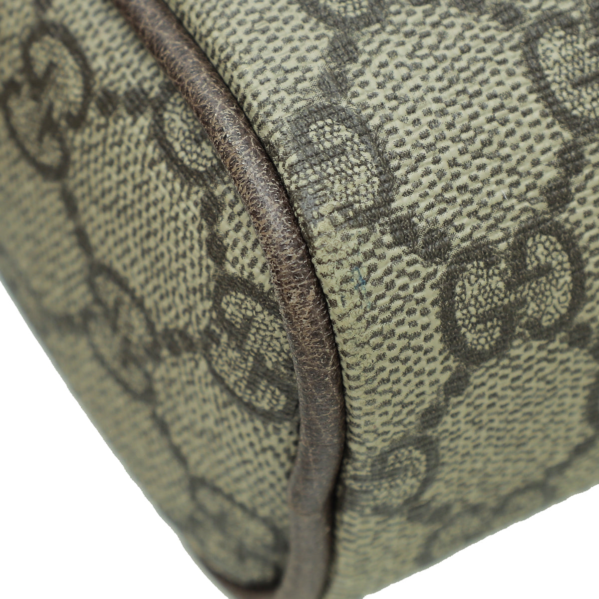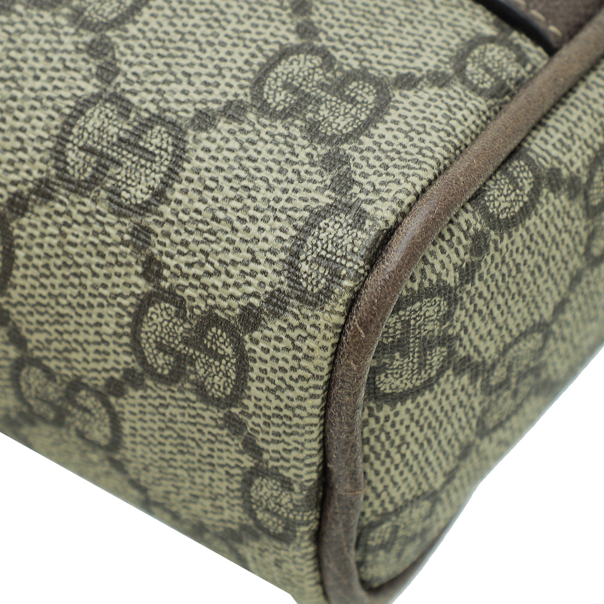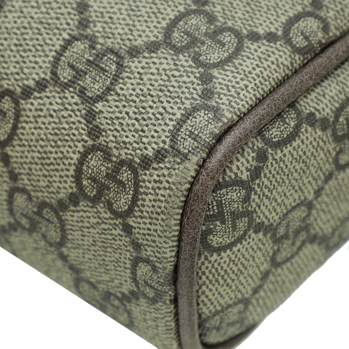 المواد: قماش سوبريم بنقش GG باللون الأبنوسي مع زخرفة من الجلد باللون البني وشريط ويب باللون الأخضر/الأحمر